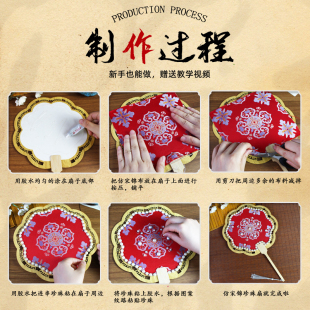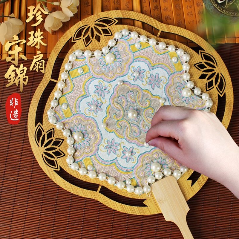 宋锦珍珠扇子中国非遗手工diy材料包古风团扇中秋节沙龙活动礼物