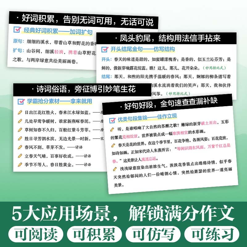 作文高分素材1000例句句是金句小学生满分作文好词好句好段优美句子大全万能公式 写优秀作文三四五六年级语文同步写作方法技巧书籍