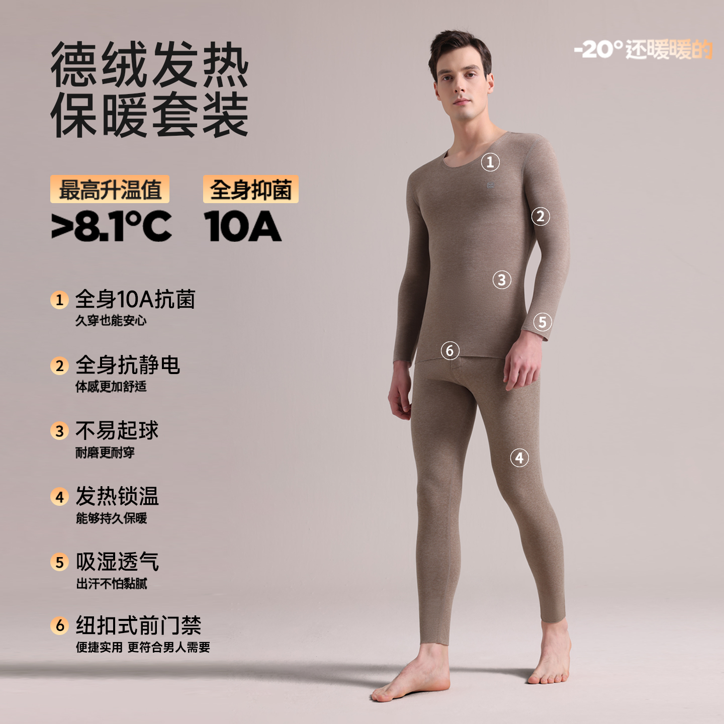 德绒羊绒发热防寒冬季 雅鹿保暖内衣男士 男款 套装 加绒加厚秋衣秋裤