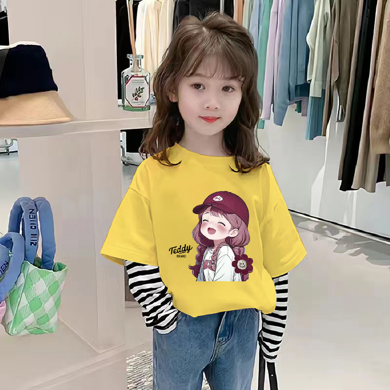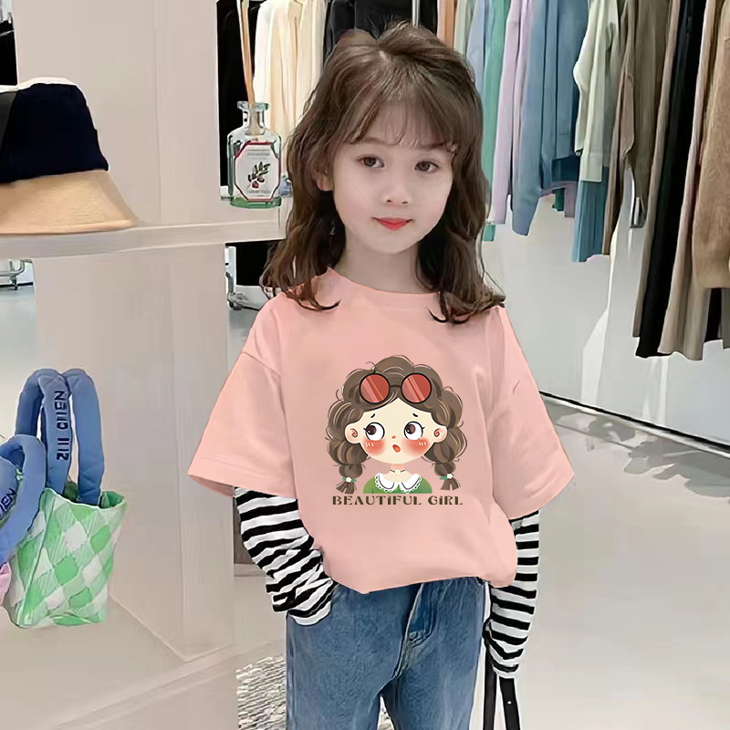 秋季 2025新款 宝宝儿童装 假两件上衣秋装 女童长袖 打底衫 t恤春秋款