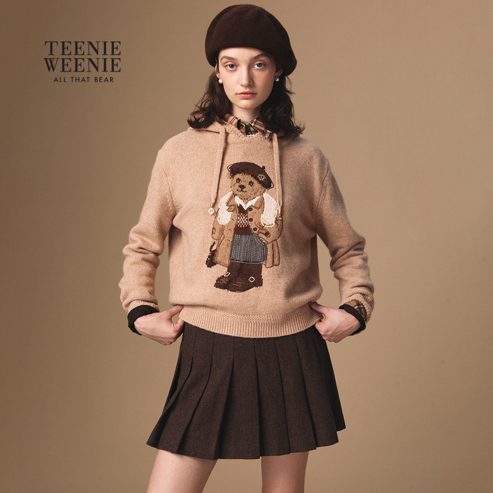 大熊提花连帽毛针织衫 新款 上衣 绵羊毛衣秋季 TeenieWeenie小熊女装