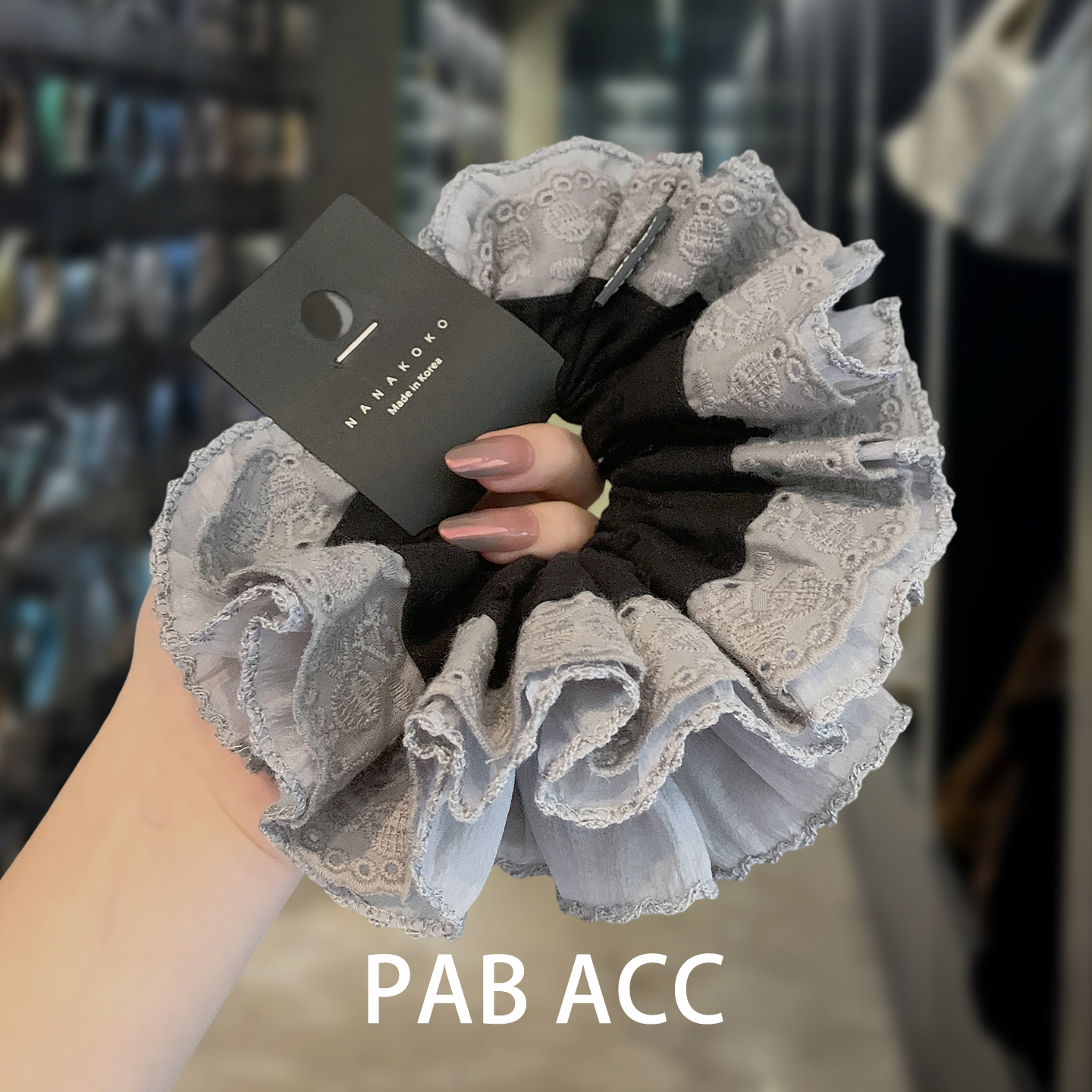 韩国新款 拼色蕾丝花边大肠发圈高级感后脑勺扎发头花皮筋多层发饰