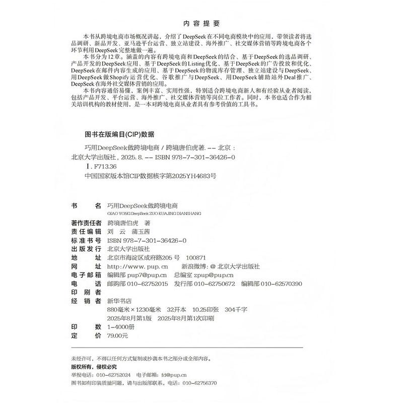 北京大学出版 正版 跨境唐伯虎 巧用DeepSeek做跨境电商 社9787301364260 2025新书