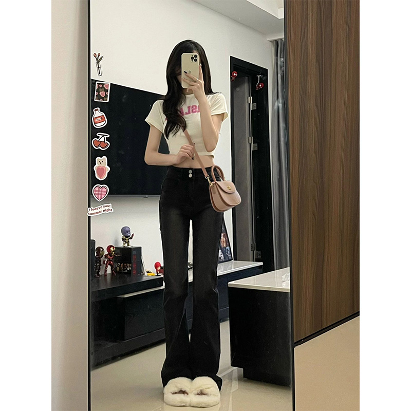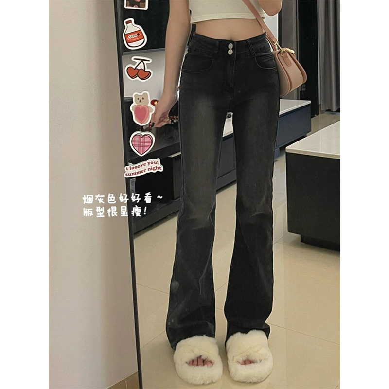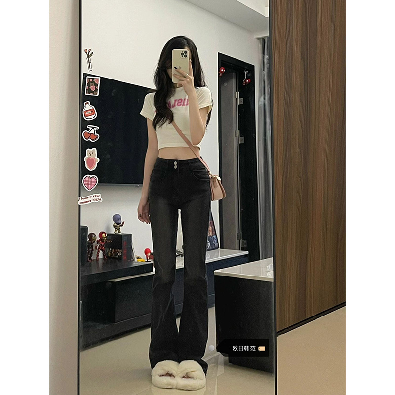 显瘦喇叭裤 大码 高腰弹力修身 女胖mm秋季 子梨型 复古辣妹微喇牛仔裤