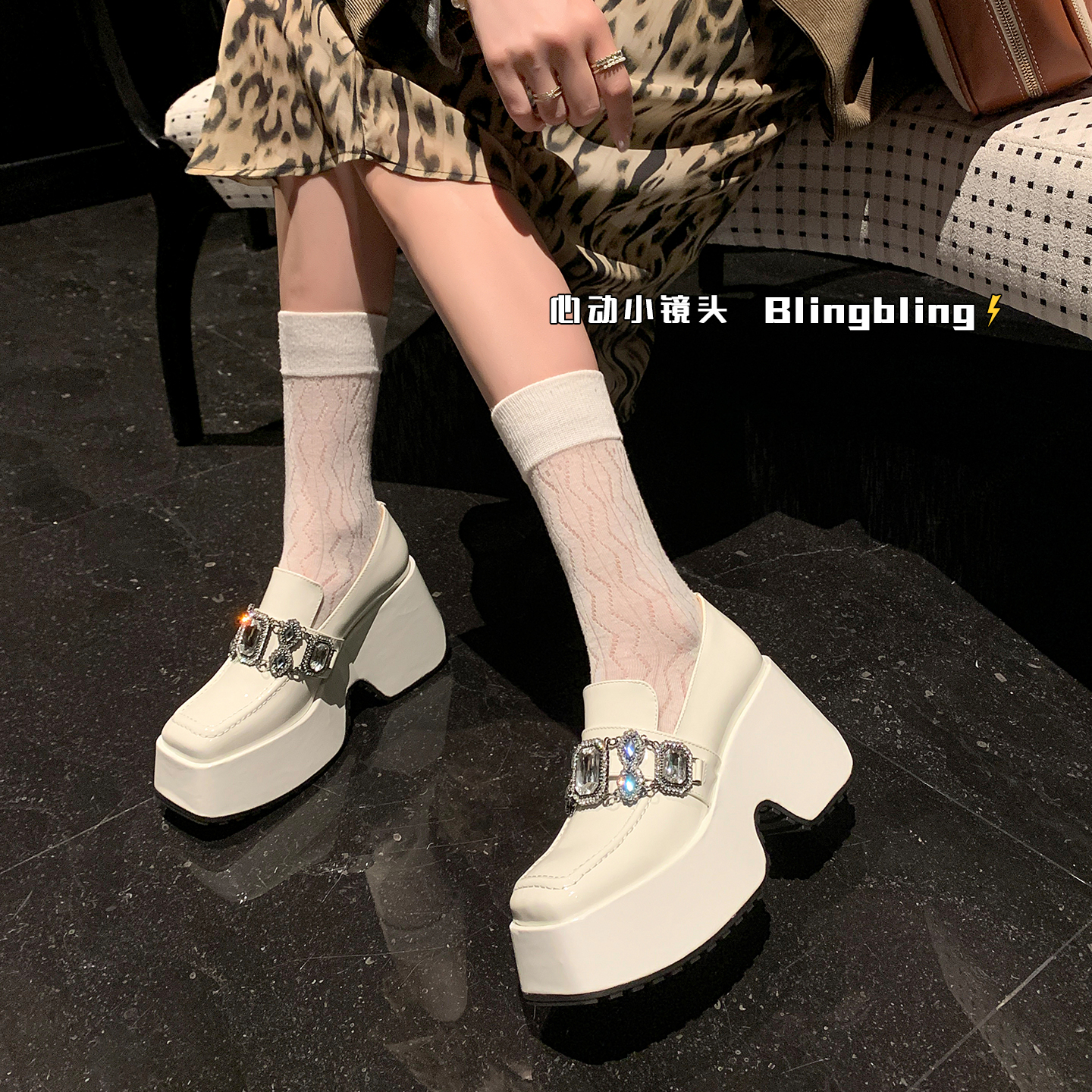 小个子增高松糕底皮鞋 2025秋冬新款 女乐福鞋 漆皮厚底坡跟深口单鞋