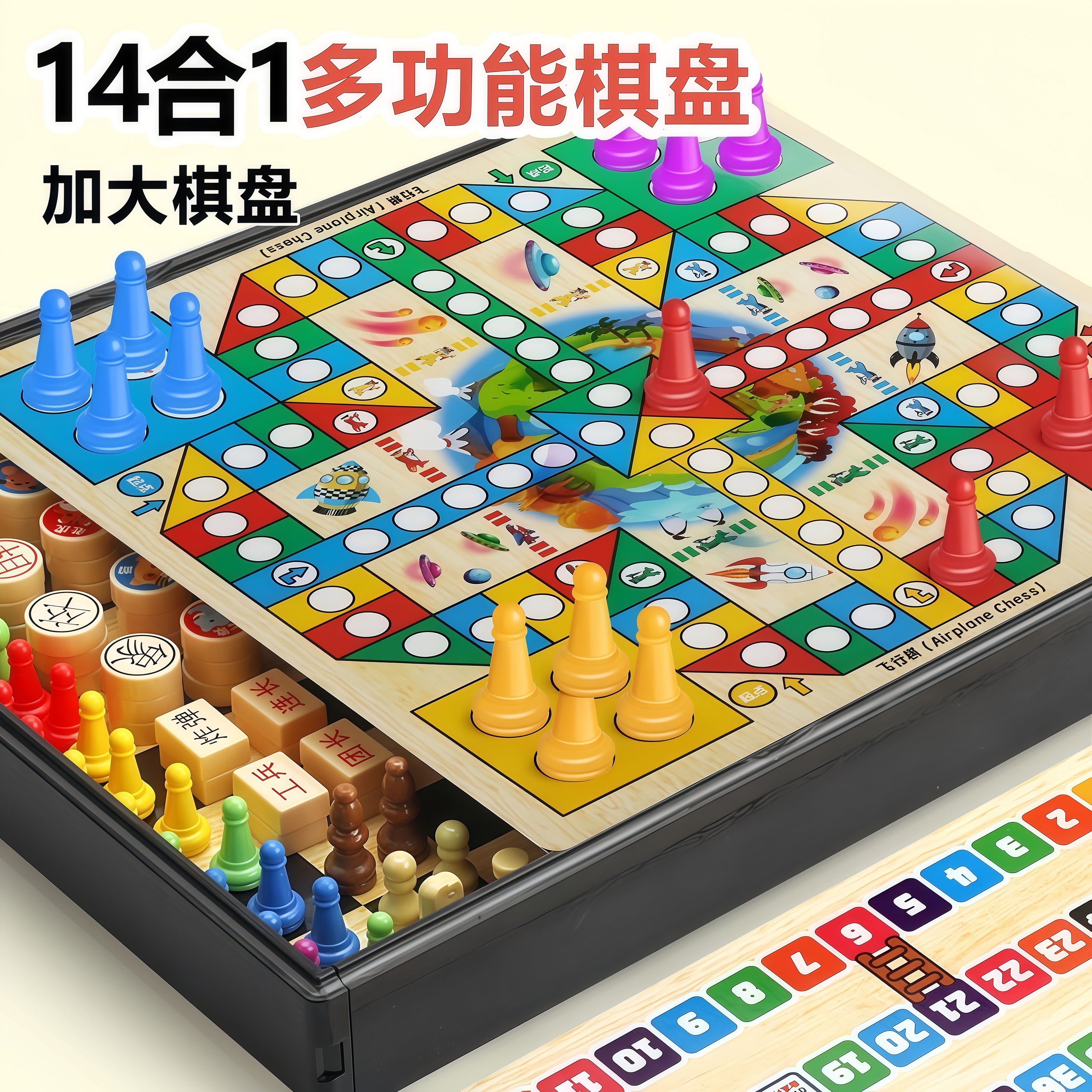 飞行棋五子棋儿童早教益智跳棋多功能游戏合一棋类小学生六一玩具