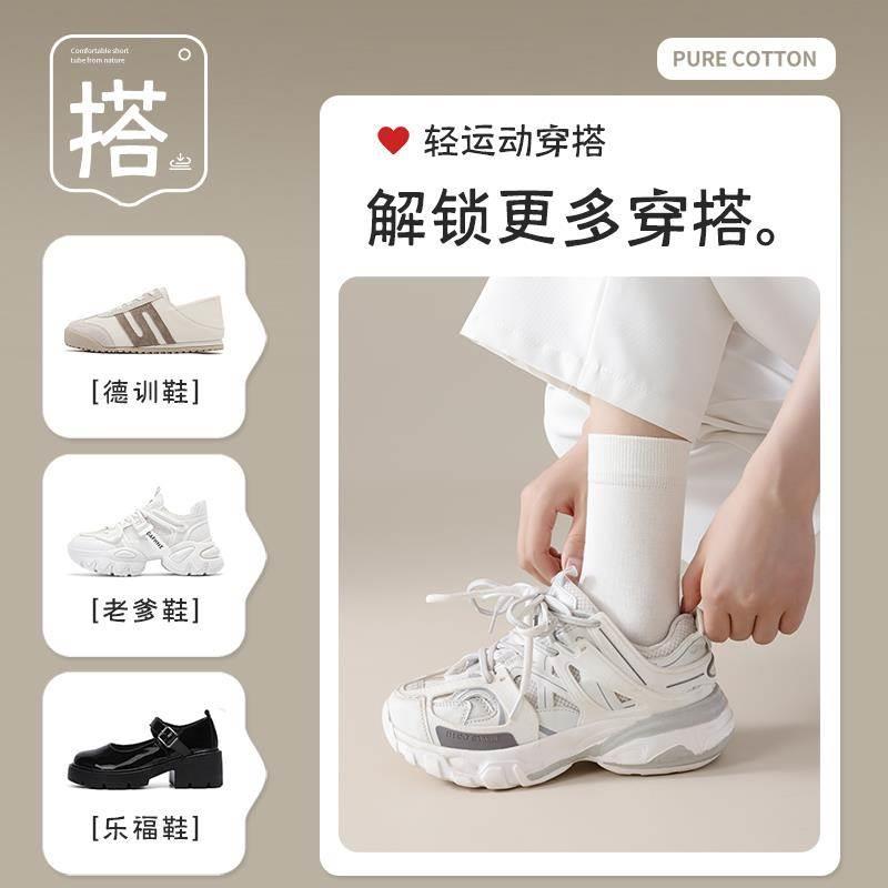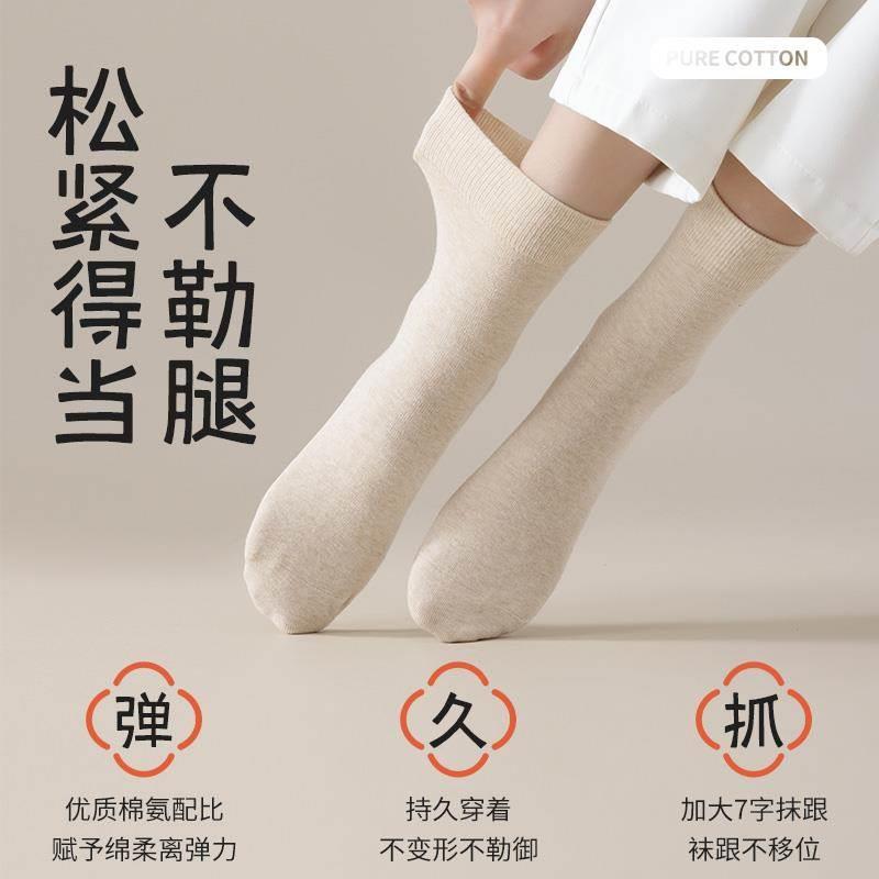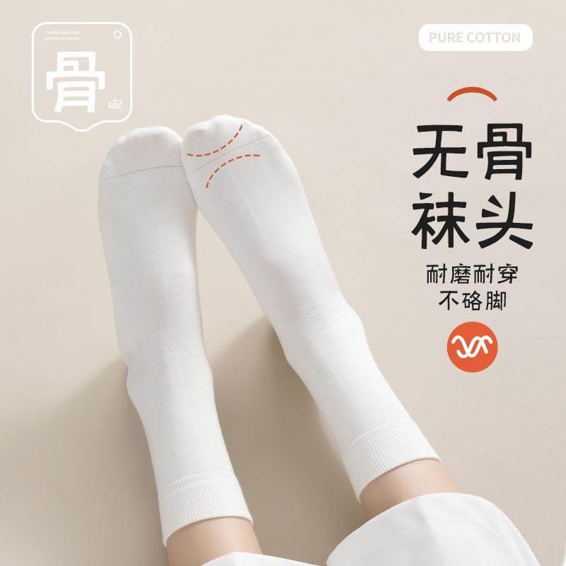 女士无骨月子袜白色中筒全棉袜 纯棉防臭短袜2025新款 袜子女款 秋季
