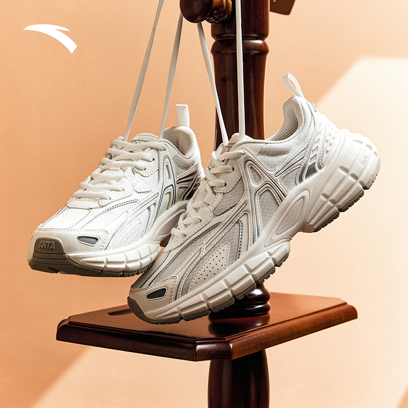 官方运动鞋 男秋季 女122548801 安踏破晓银色复古休闲鞋 关晓彤同款