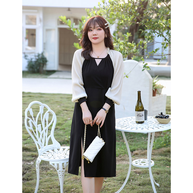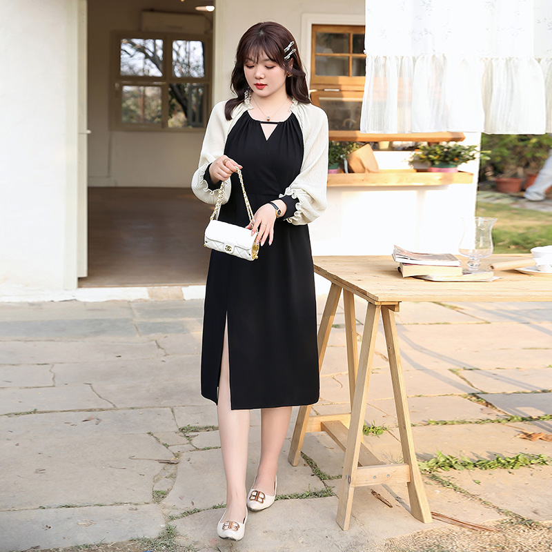 小心机藏肉收腰长袖 绮娑大码 新款 显瘦胖MM连衣裙初秋季 A字裙 女装