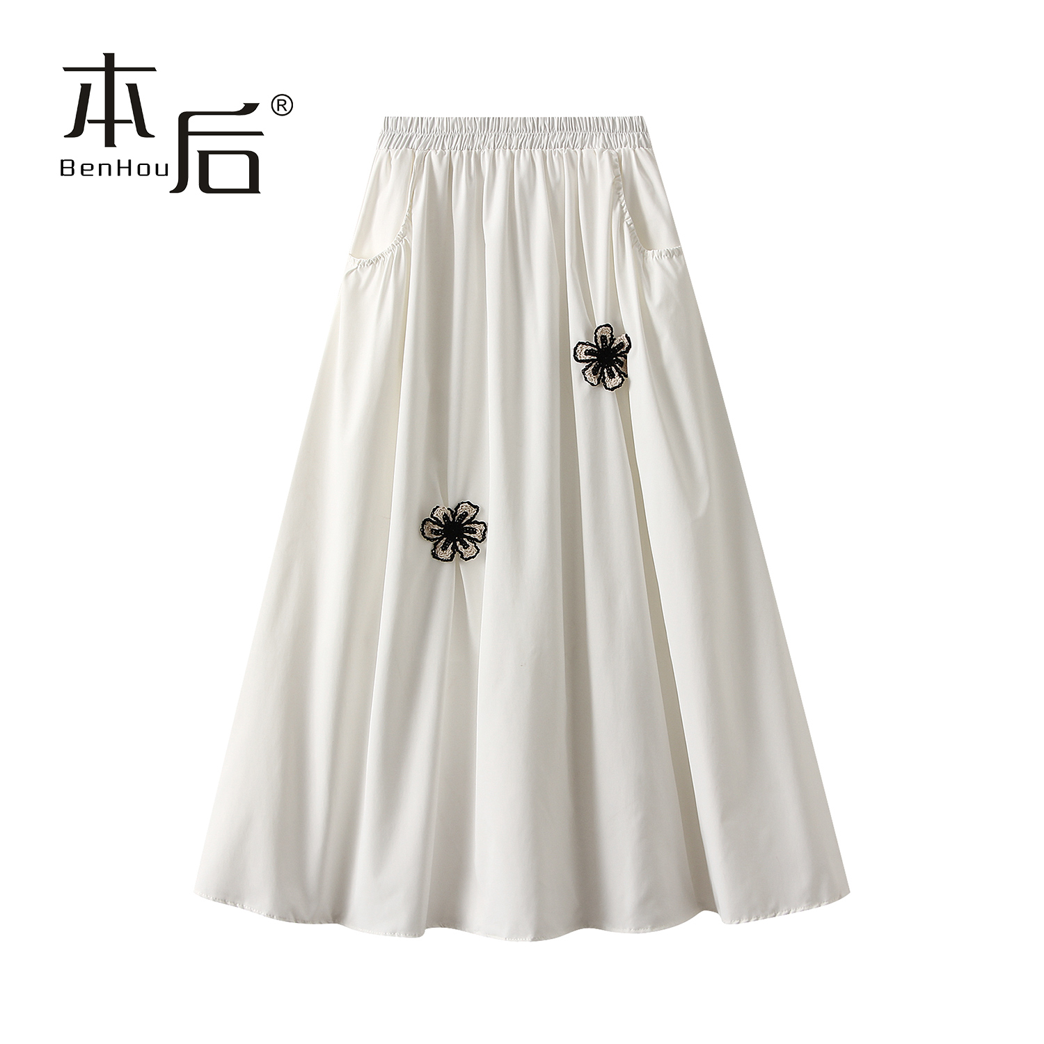 口袋花朵刺绣a字半身裙女秋韩系设计感休闲裙子 2531 BenHou 本后