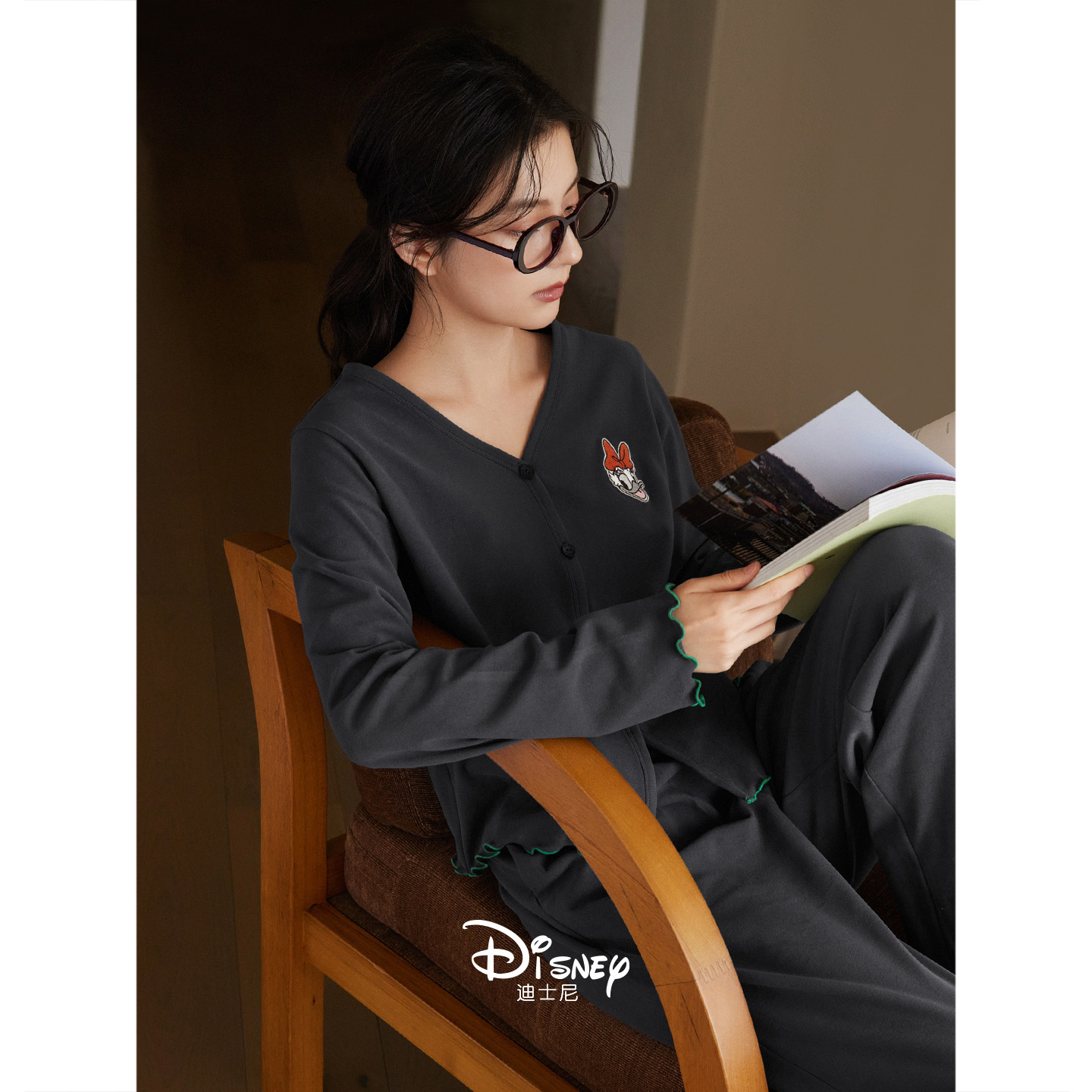 家居服气质显瘦可外穿套装 柔软棉长袖 春秋V领开衫 迪士尼睡衣女款