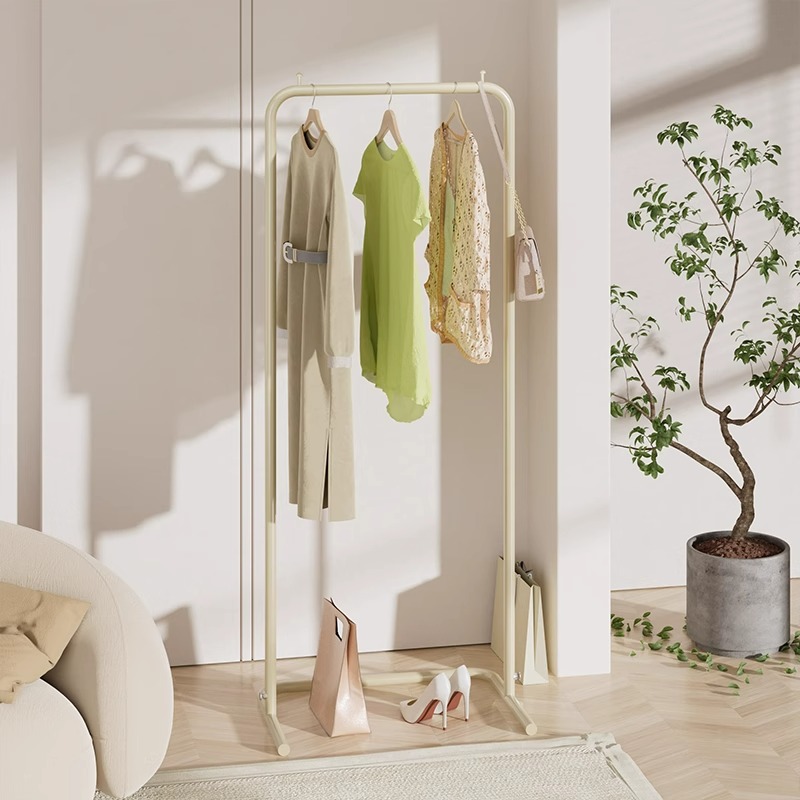 双杆式 衣帽架置地卧室阳台简易晾晒衣架双层挂衣杆升降收纳架带轮