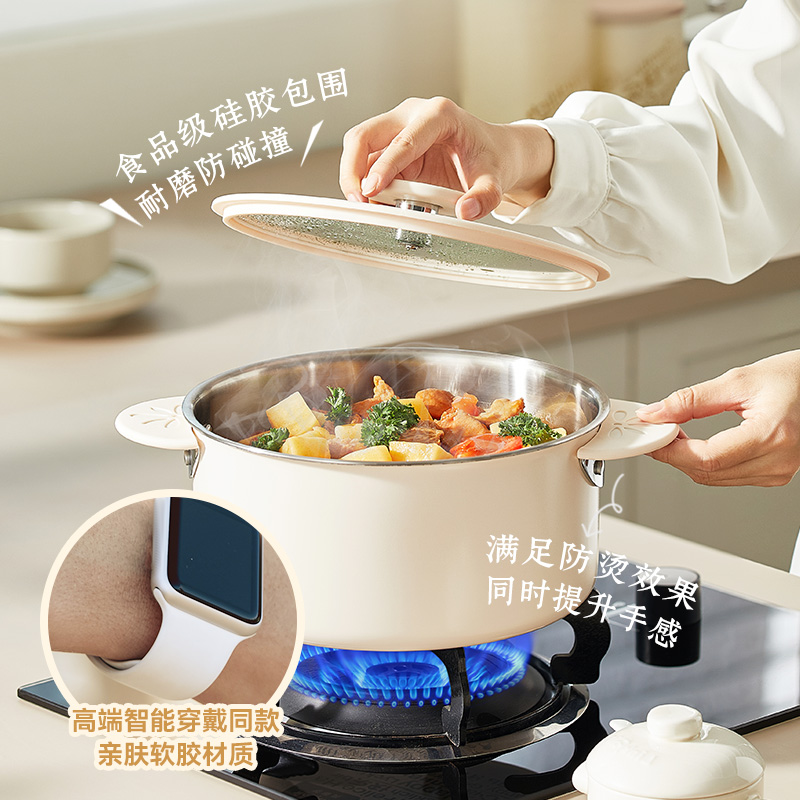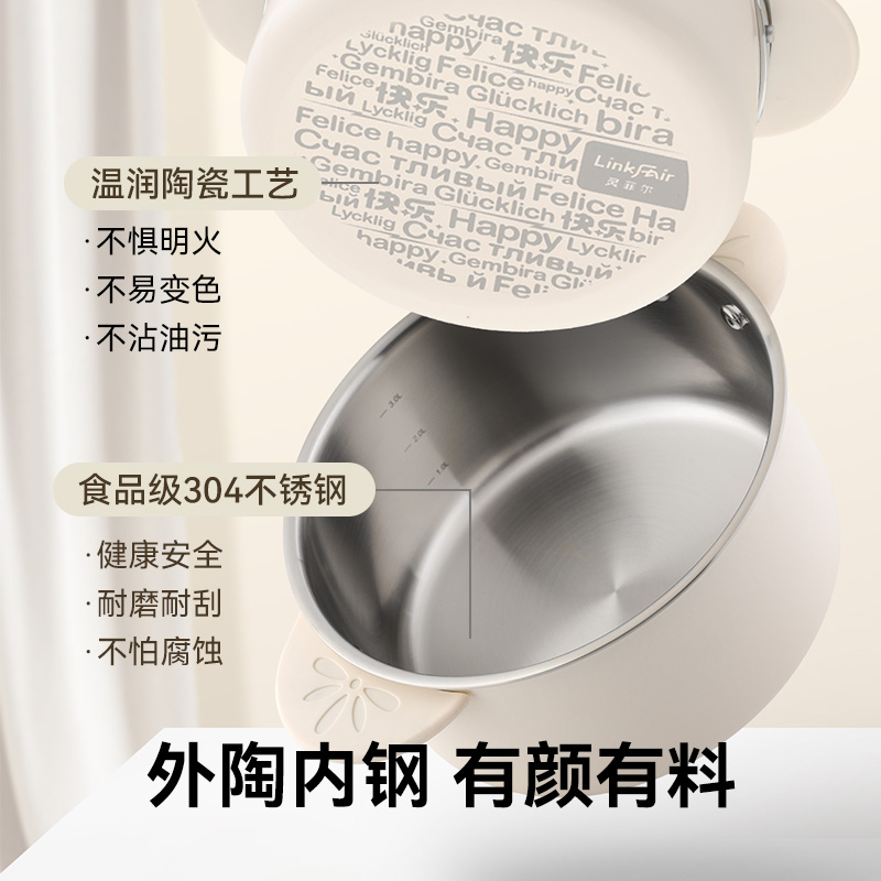 灵菲尔今夜白一锅多用304陶瓷不锈钢汤锅家用炖锅蒸锅煮锅电磁炉