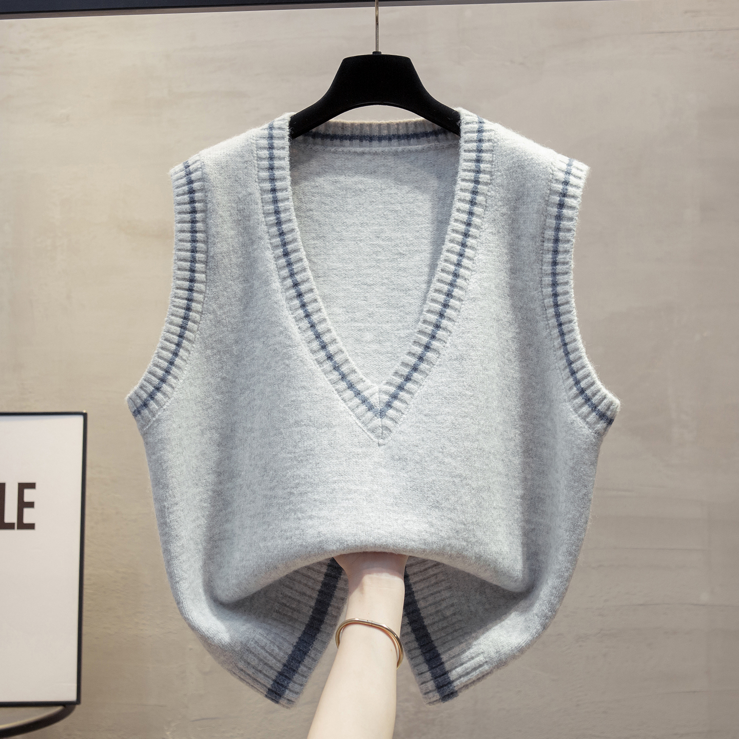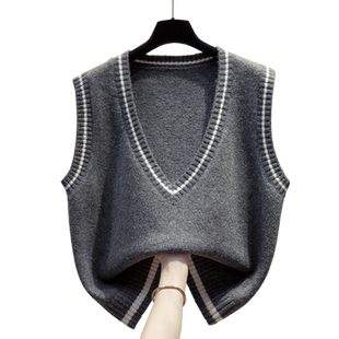 2025新款 宽松针织马甲女外穿百搭学院风秋圆领冬马海毛衣背心叠穿