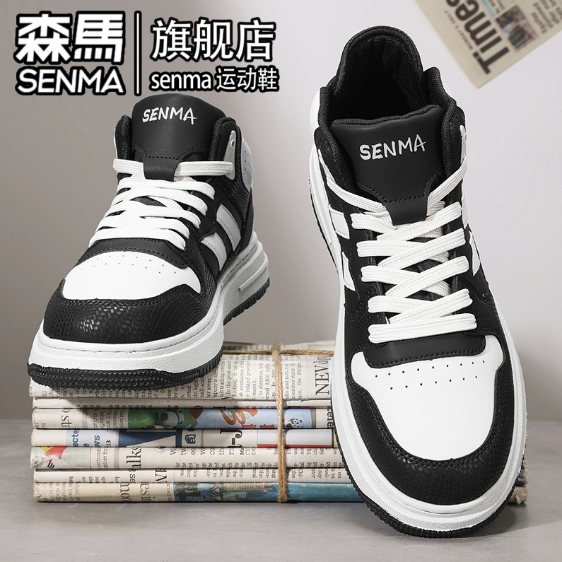 2025新款 真皮运动软底增高潮鞋 秋季 男士 百搭休闲板鞋 森马高帮男鞋