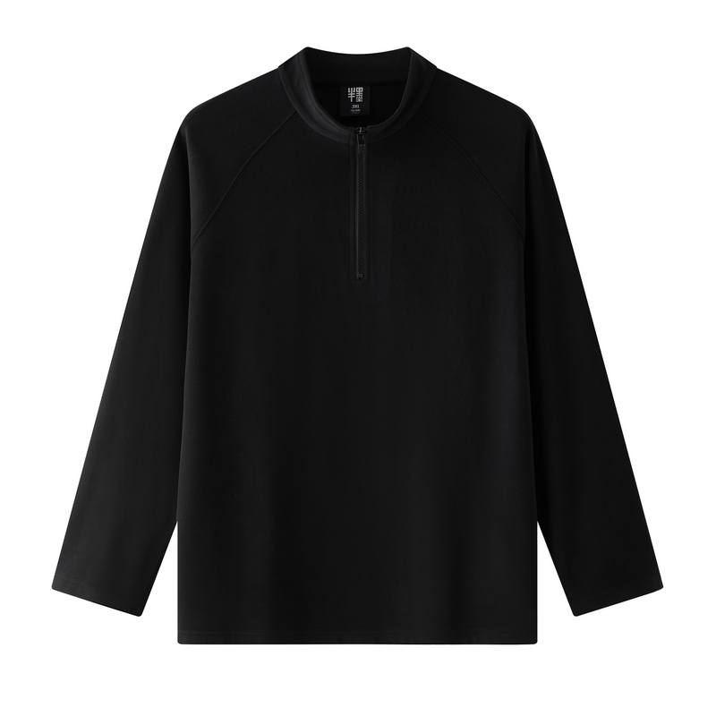 新款 半墨大码 T恤男2025秋季 拼接长袖 半高领保暖内搭胖子外套 男装