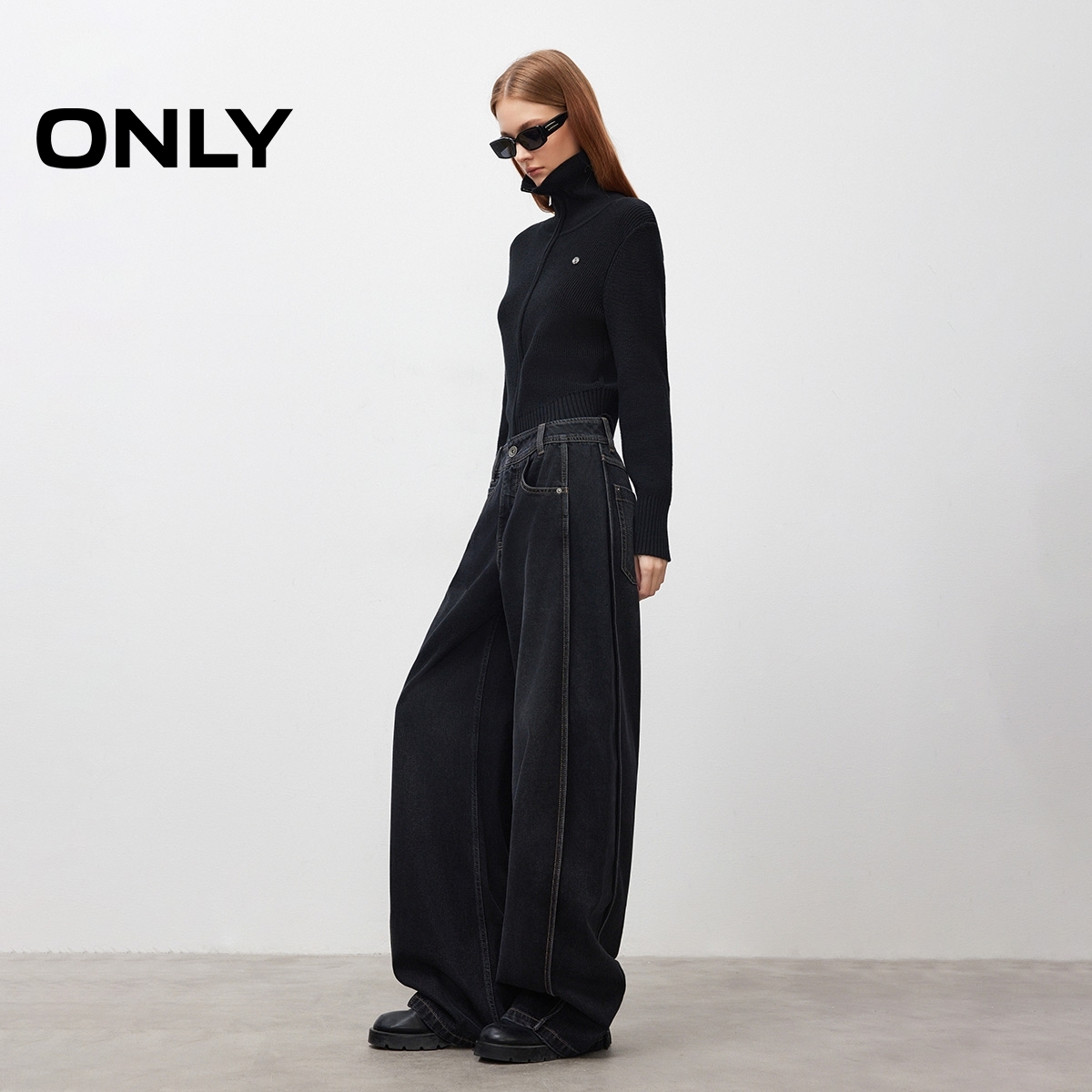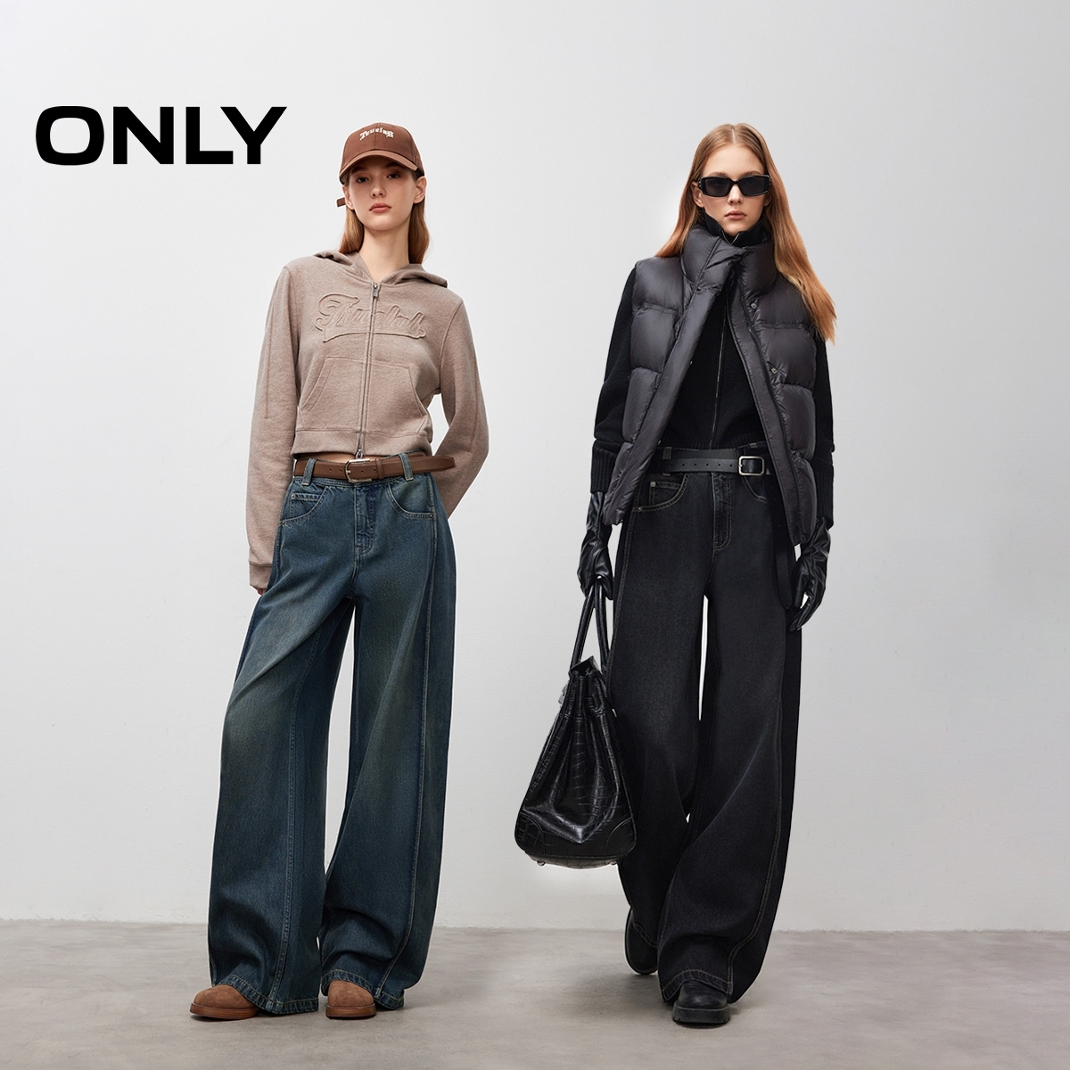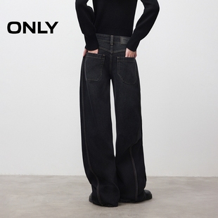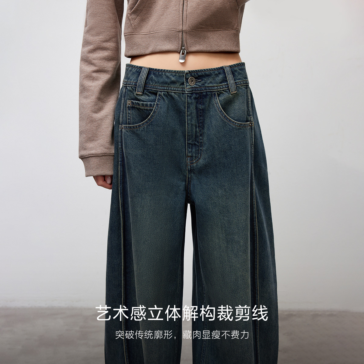 美拉德立体裁剪撞色线弯刀牛仔裤 女春秋设计感宽松直筒阔腿香蕉裤