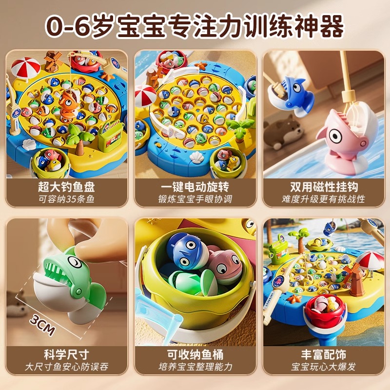 宝宝电动磁性钓鱼玩具儿童1一2岁3益智小孩三周半两男孩6女孩幼儿