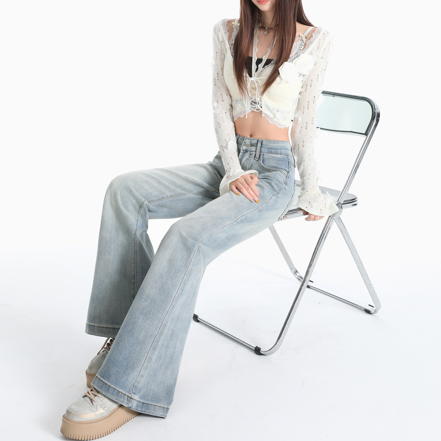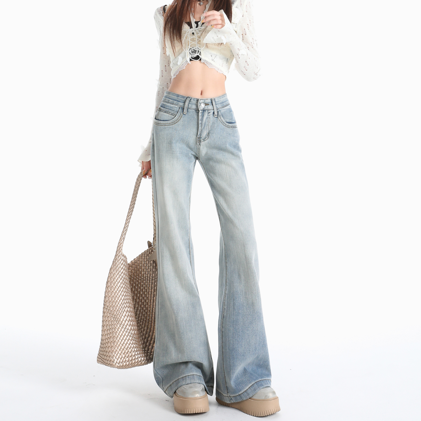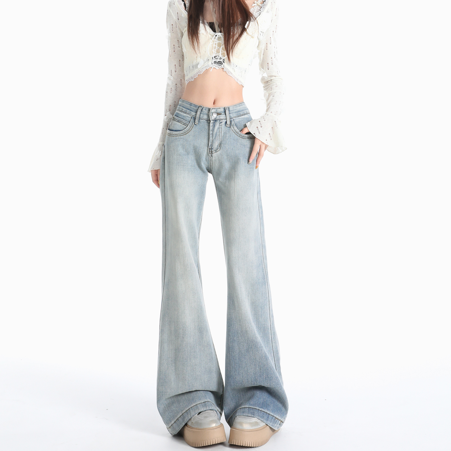 弹力喇叭裤 中低腰小个子浅色不贴腿宽松秋季 女2025新款 微喇牛仔裤