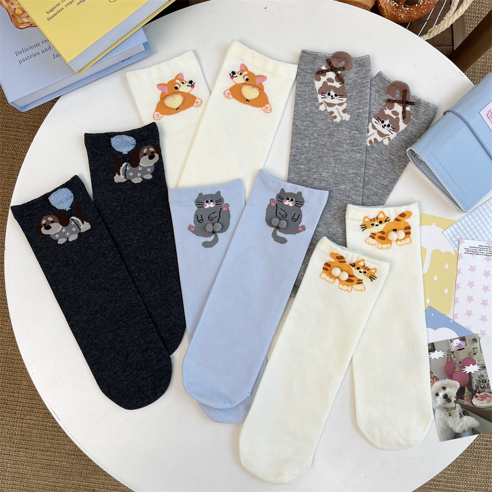无骨精梳棉配饰袜子秋冬可爱猫咪柯基卡通童袜 原创蛋蛋儿童袜