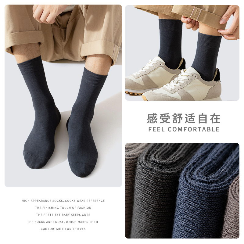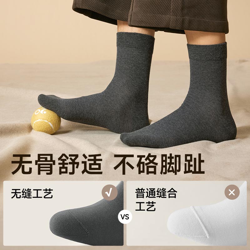袜子男春秋季 无骨长袜 纯棉中筒袜商务抗菌防臭吸汗抗起球黑色男士