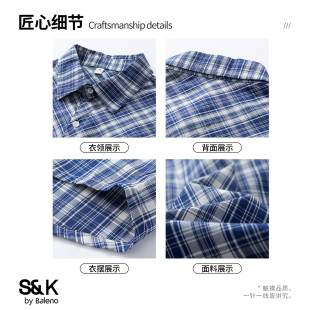 宽松休闲时尚 班尼路SK复古格子长袖 2025秋款 男士 衬衣外套男MS 衬衫