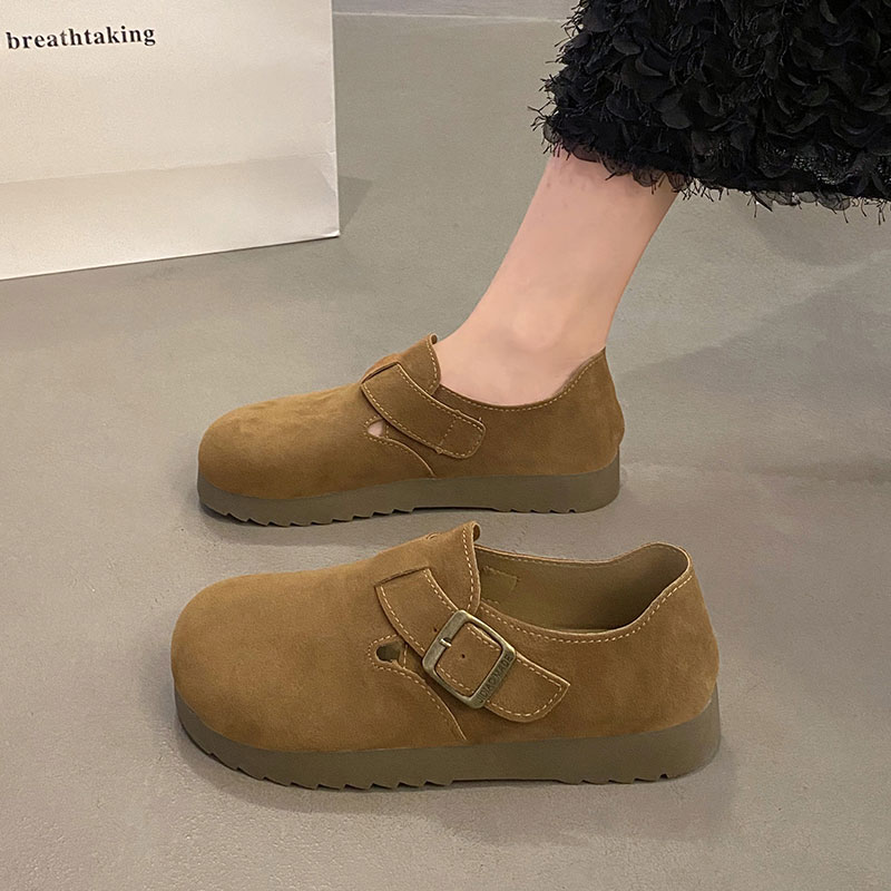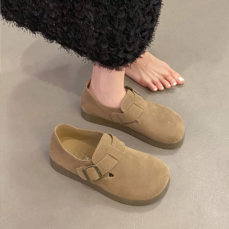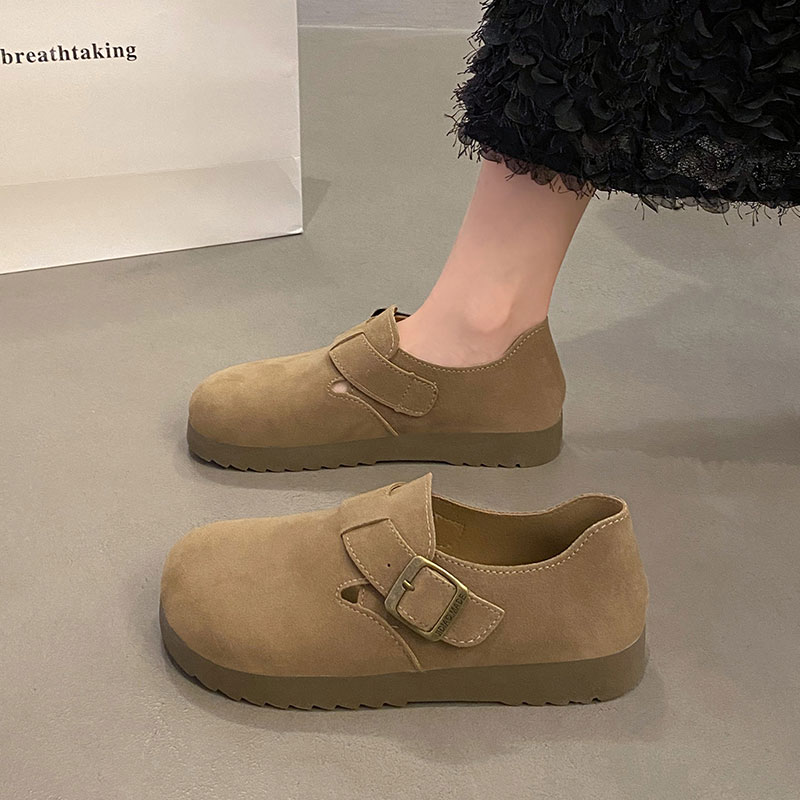 一脚蹬平底豆豆鞋 磨砂勃肯鞋 厚底复古软底博肯单鞋 秋季 女2025新款