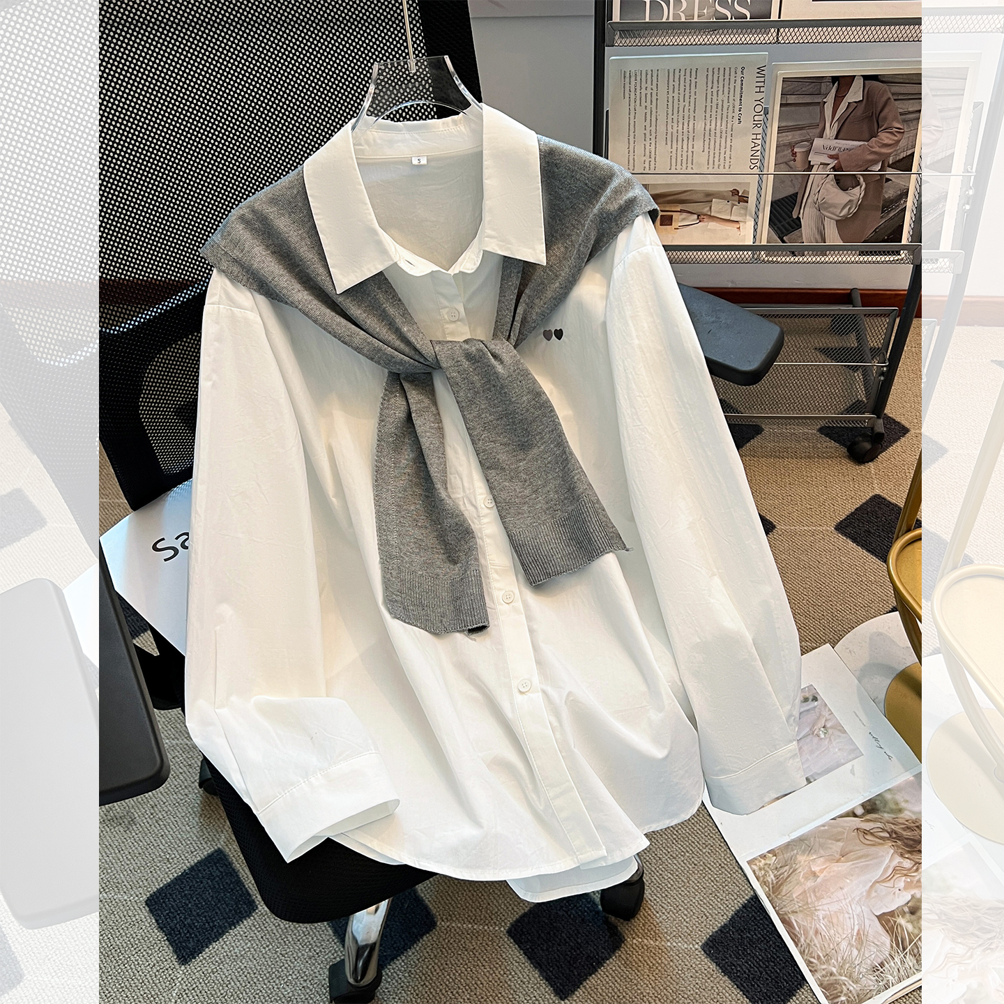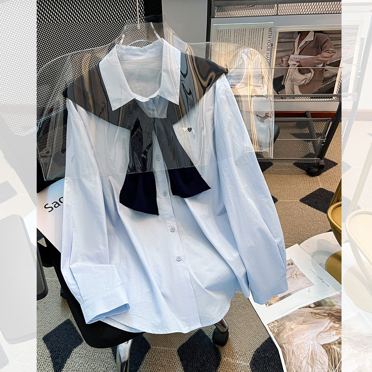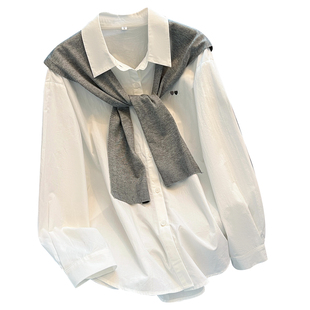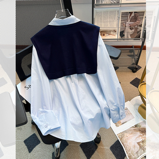 宽松大版 蓝色长袖 加披肩两件套女2025早秋新款 衬衫 慵懒风上衣 薄款