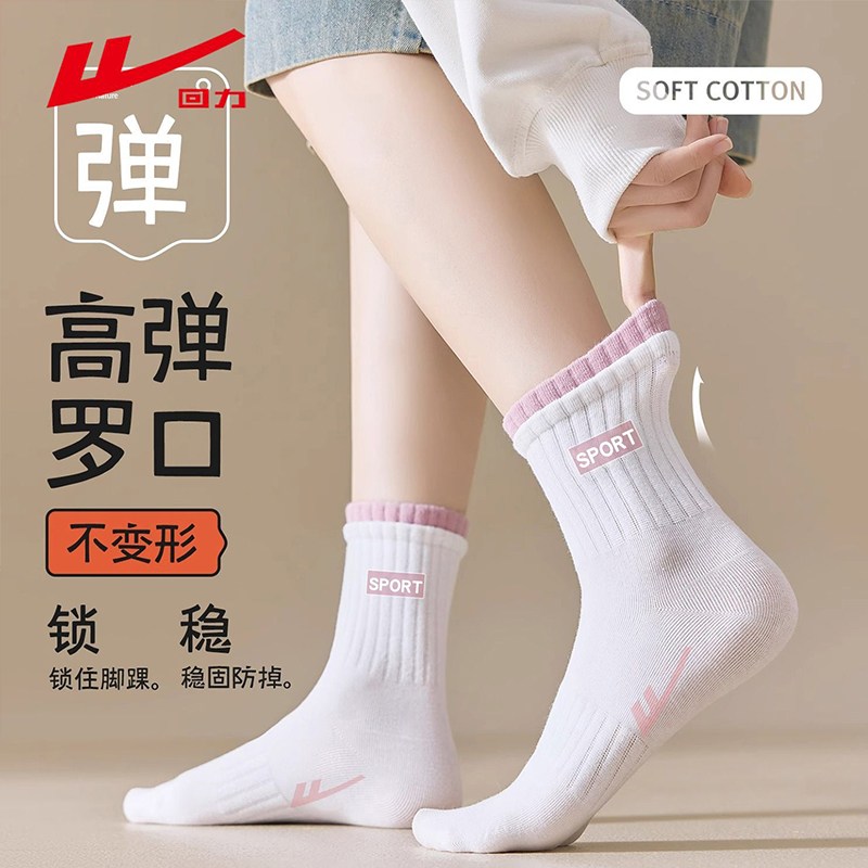 回力2025新款 抗菌防臭运动中筒袜 袜子女初中生纯色新疆棉春秋四季
