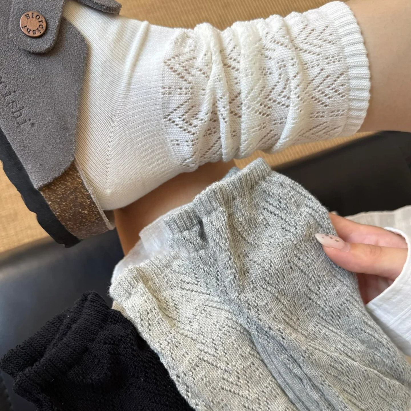 压力小腿袜女半腿jk风中筒堆堆袜配靴子长靴小皮鞋 灰色春秋长筒袜