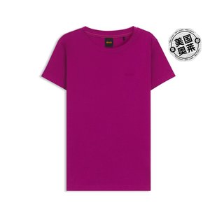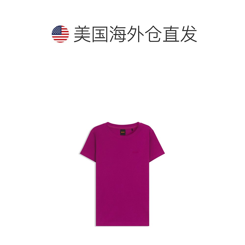 深粉色 棉质针织T恤 美国奥莱直发 boss带有标志细节 自营