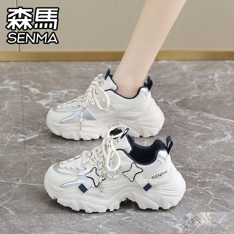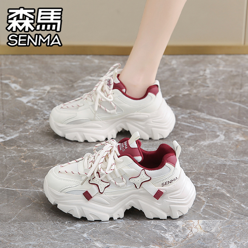 透气网面运动休闲跑步女生小白厚底增高网红老爹潮鞋 森马女鞋 秋季