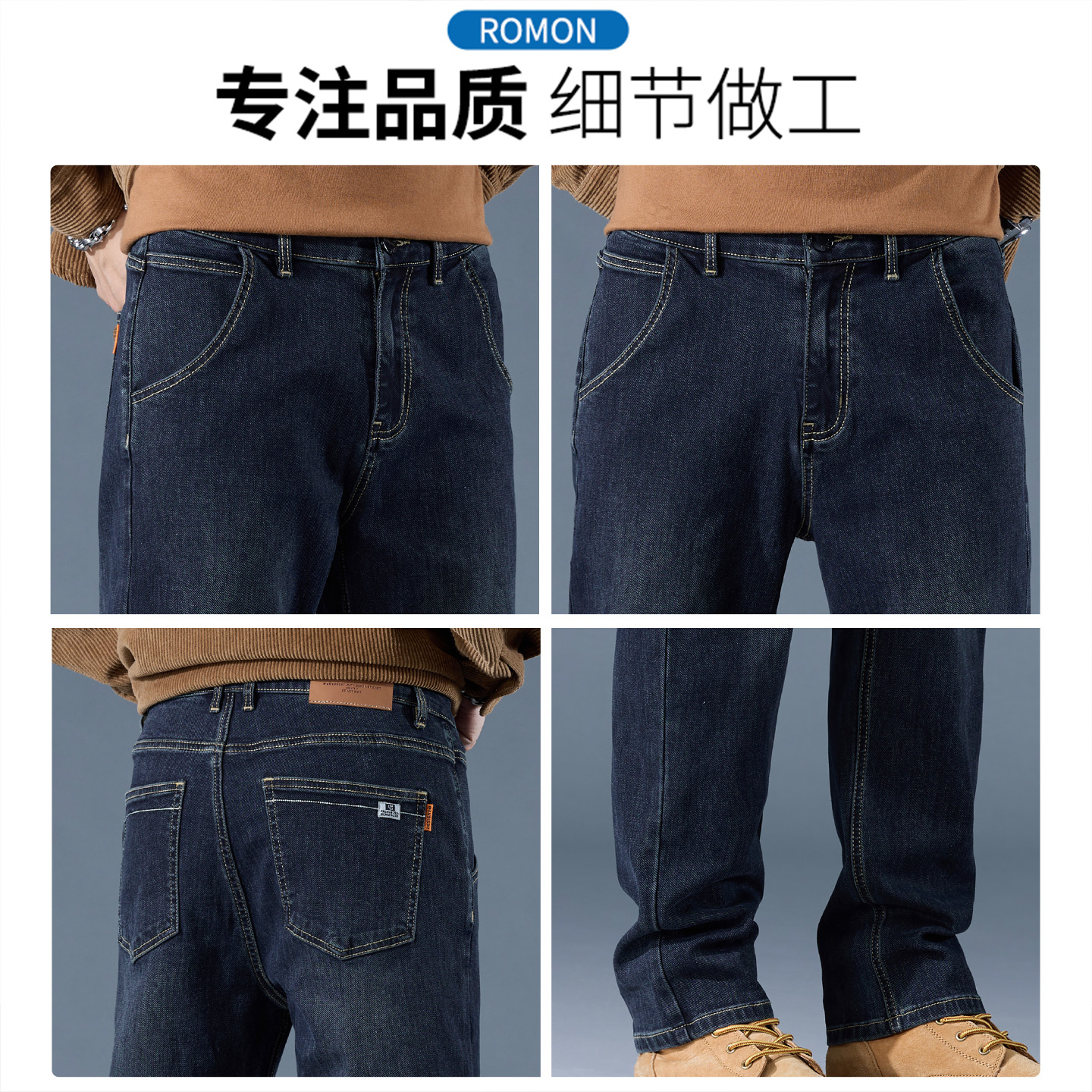 男秋季 宽松直筒长裤 新款 加绒休闲裤 N3Z 大码 罗蒙轻商务水洗牛仔裤