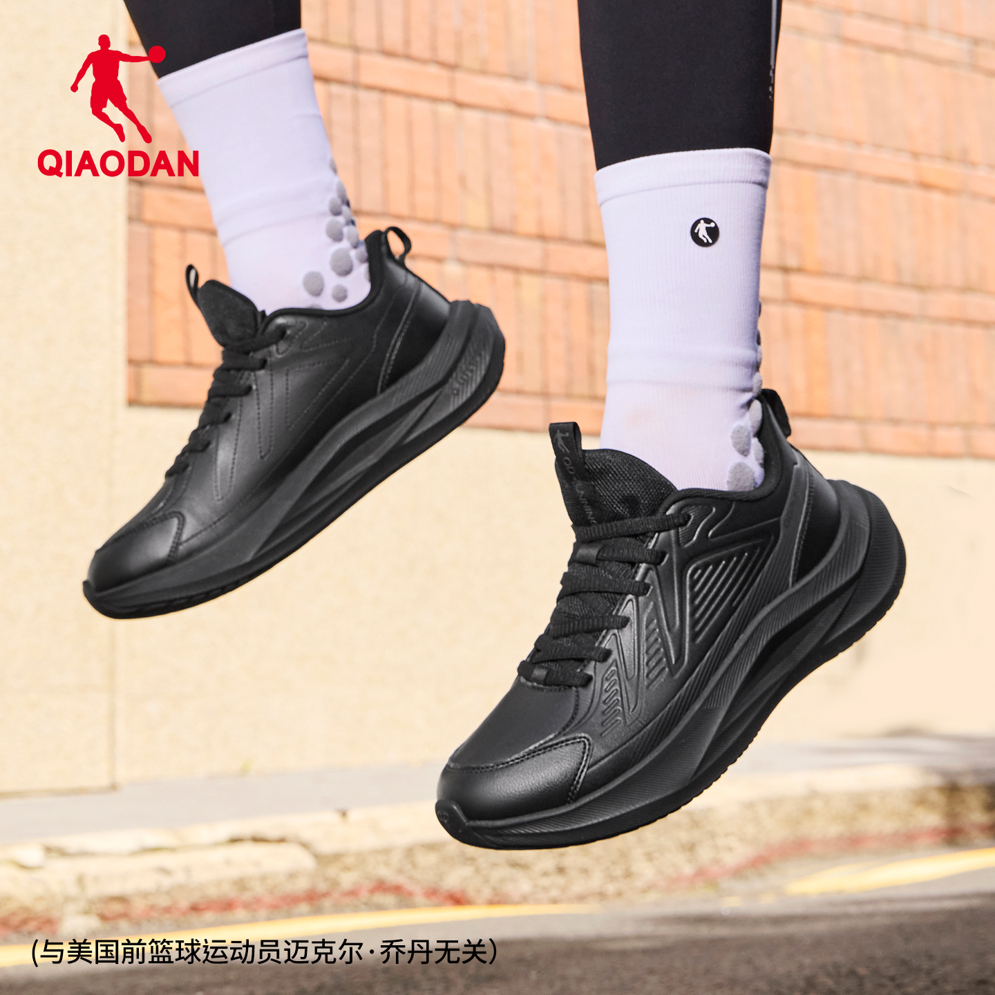 减震轻便软底休闲黑色爸爸跑鞋 秋冬皮面防水跑步鞋 男鞋 乔丹运动鞋