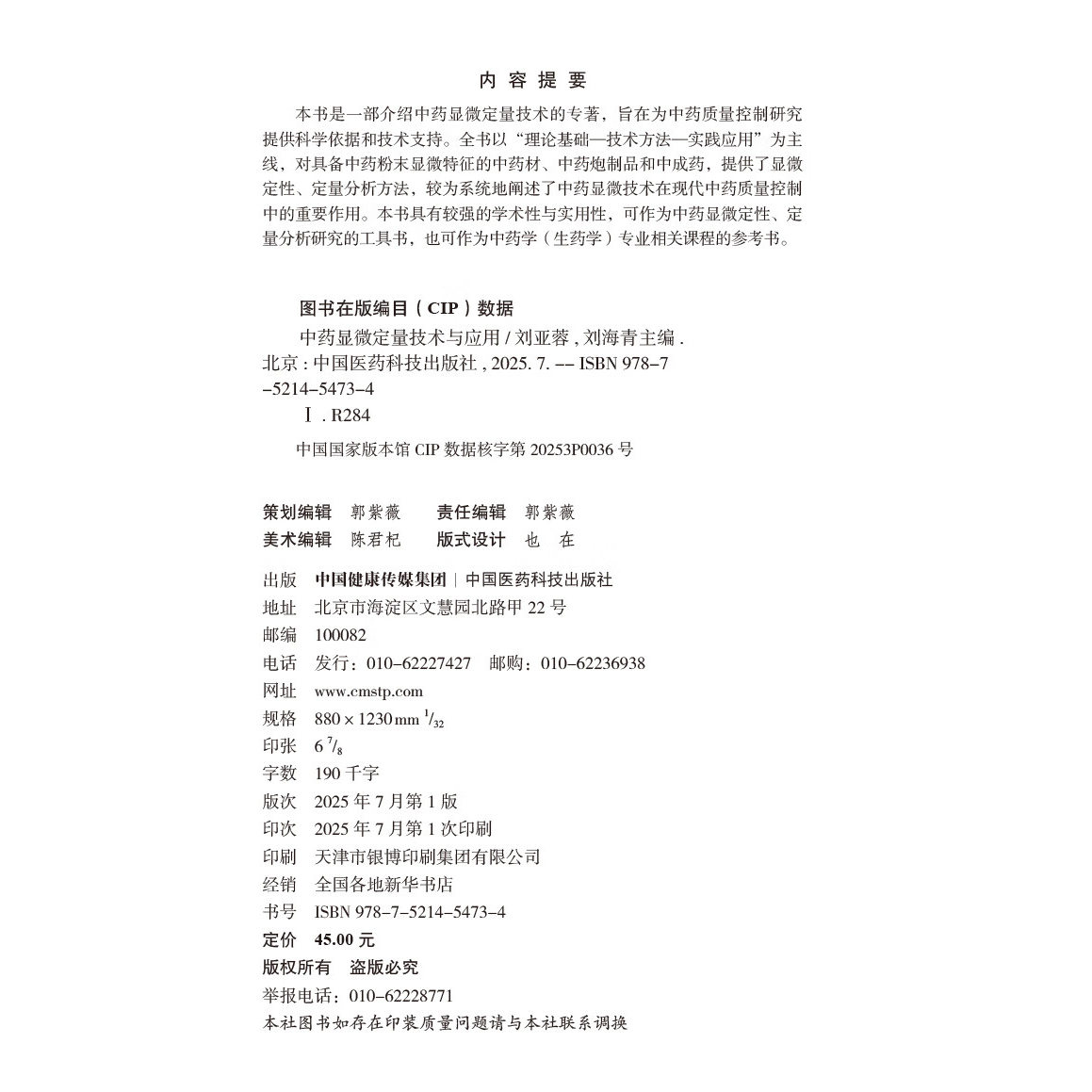 中药显微定量技术与应用显微定量法鉴别药材真伪中成药药材投料量中药含量测定中药中成药含量测定中药学检验工作显微定量方法检验