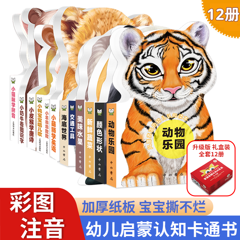 幼儿认知读本0 6岁宝宝认知书撕不烂益智早教书看图识字认数彩色卡片启蒙认知互动读本学前 风靡英国 巨童全套12册礼盒装