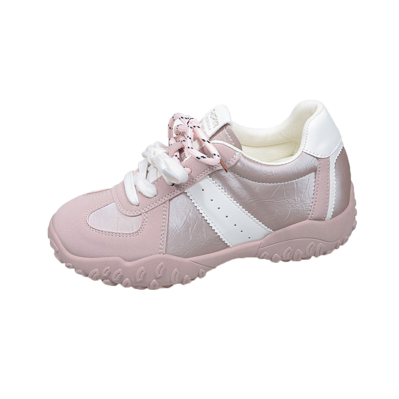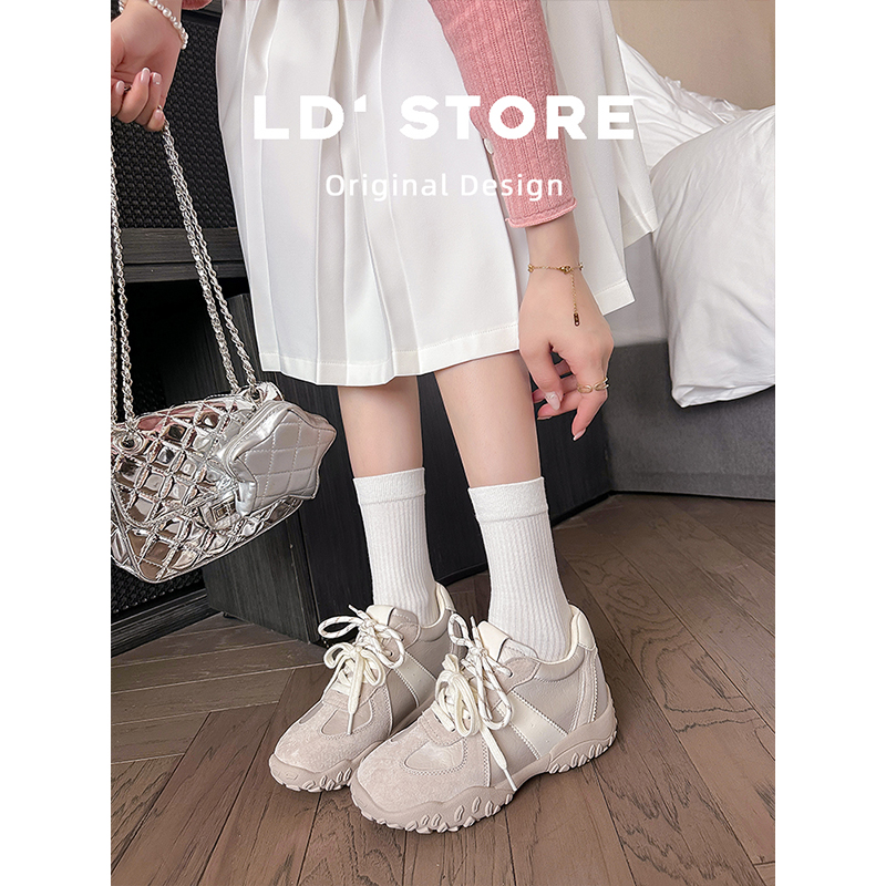 休闲运动阿甘鞋 女2025春新款 7cm内增高小个子厚底银色德训鞋 真皮
