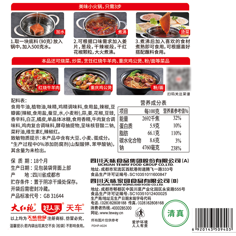 好人家5袋90g牛油火锅底料小块小包装 一人份一人食麻辣烫冒菜底料