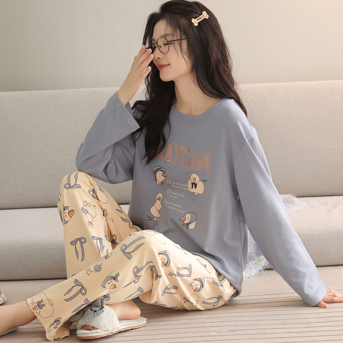 套装 卡之恋长袖 纯棉蓝色可爱大白鸭卡通长裤 春秋季 家居服 睡衣女款