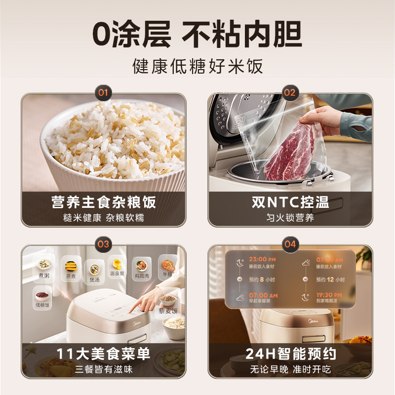 美 电饭煲0涂层4L升家用IH低糖米汤分离电饭锅3到4人不锈钢正品