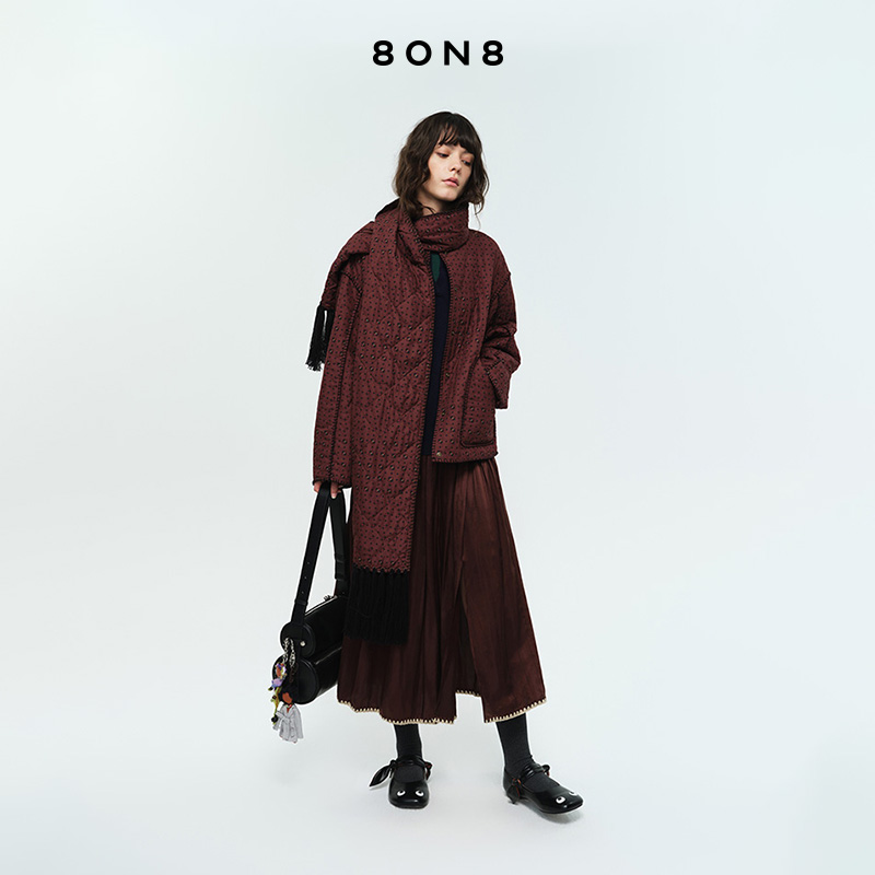 one 秋冬宽松拼接加厚保暖外套棉衣棉袄S more立领棉服女2025新款