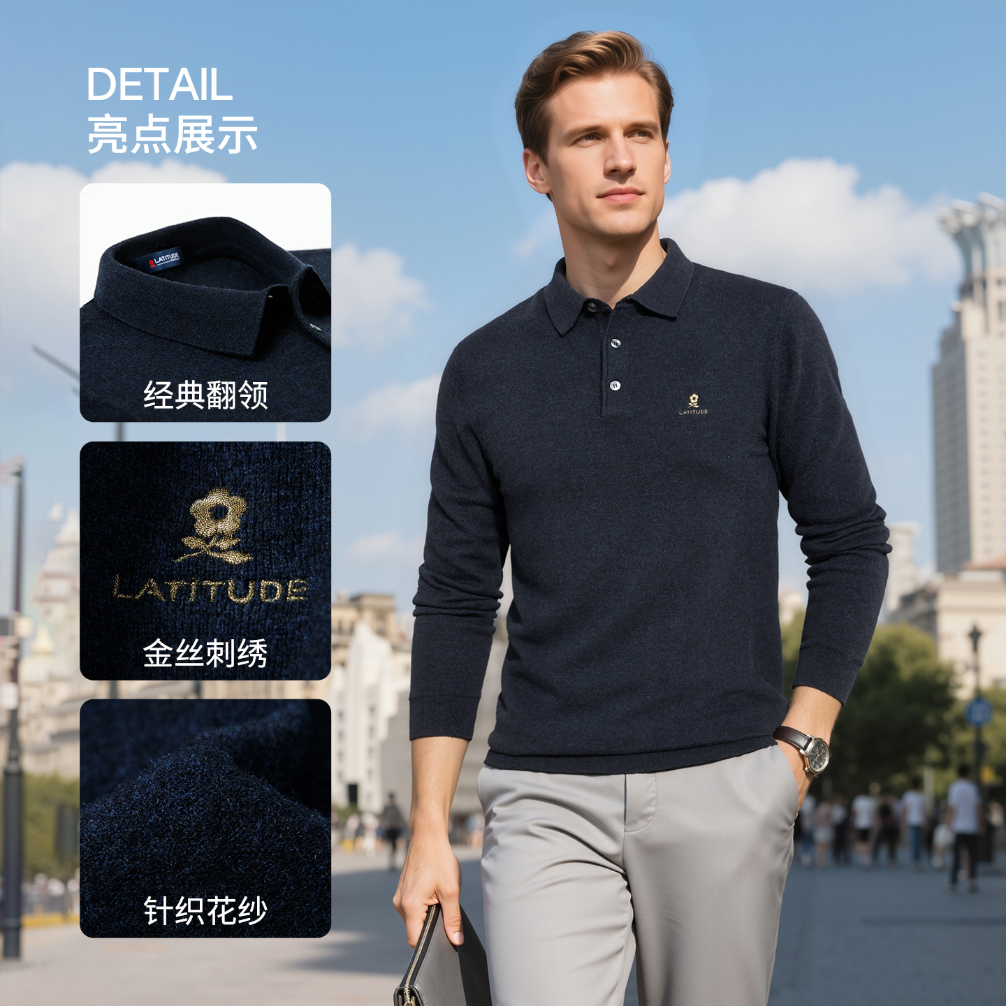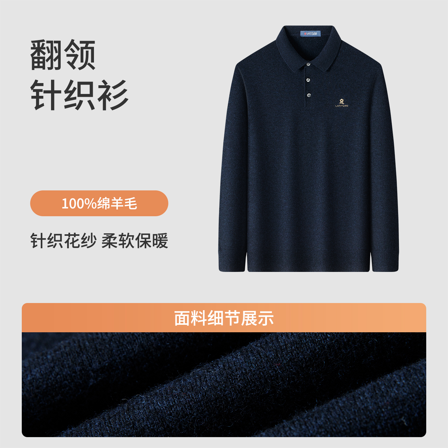冬季 纯羊毛衫 梦特娇男士 翻领针织花纱毛衣柔软保暖J 100%绵羊毛