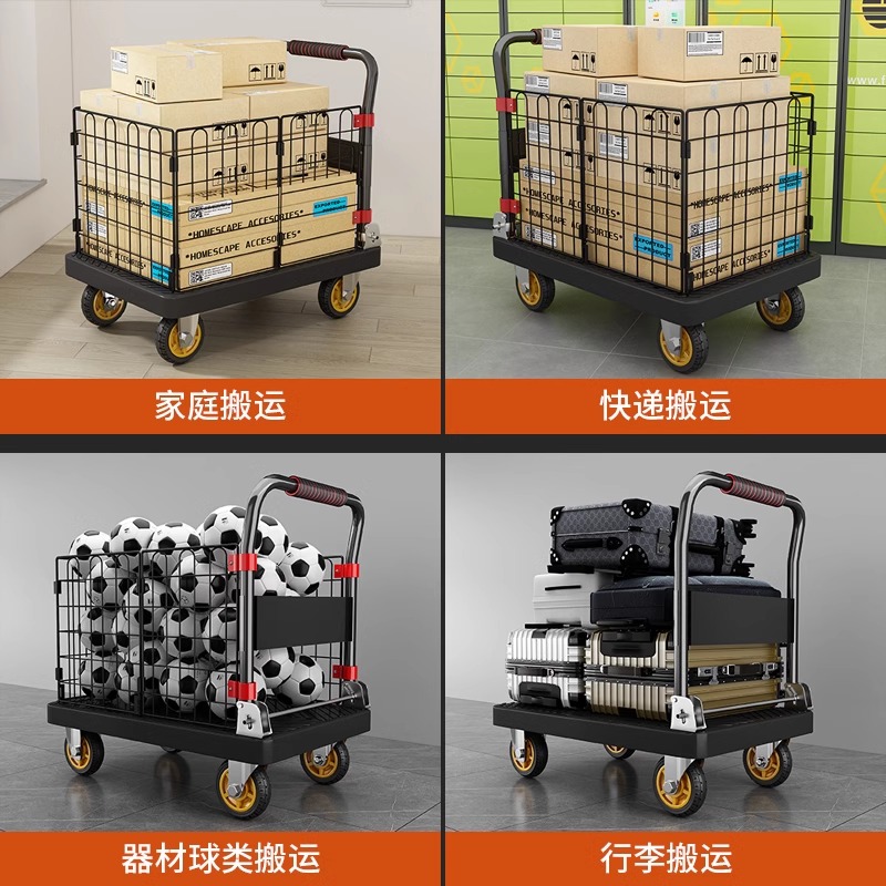 手推车搬运车小推车拖车平板车家用折叠快递静音便携手拉货购物车