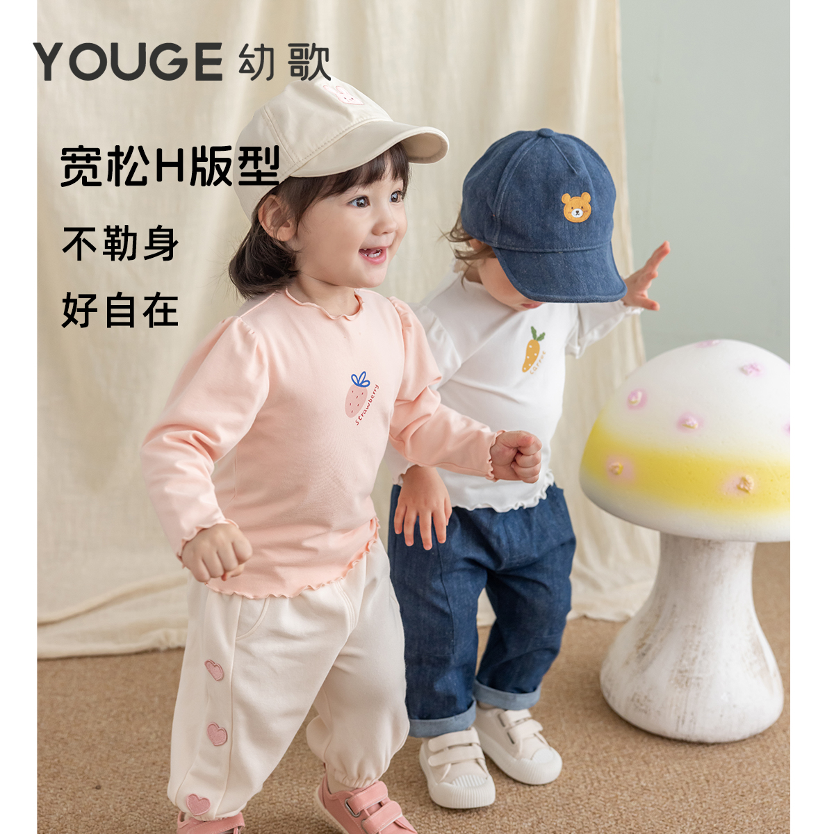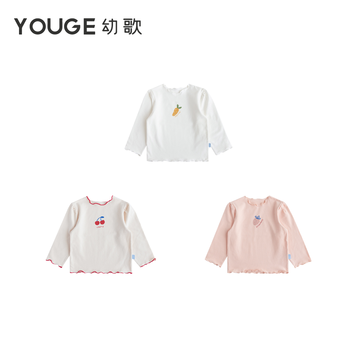 T恤女宝宝亲肤打底衫 YOUGE幼歌 柔软花边圆领长袖 新款 婴幼儿秋季