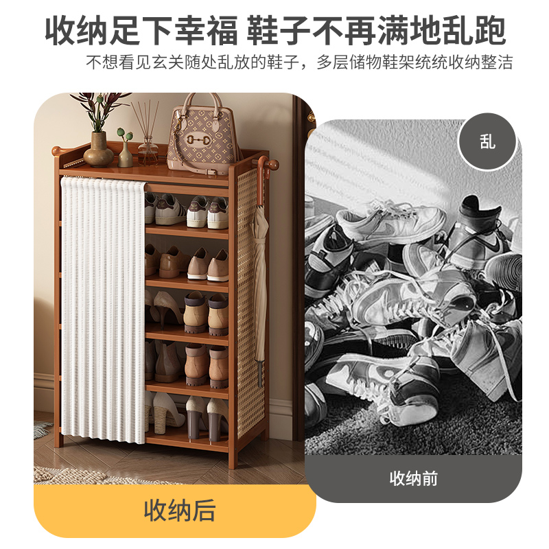 竹收纳小窄入鞋 新款 柜木多层置物 架子简易门口室内家用2025爆款 鞋