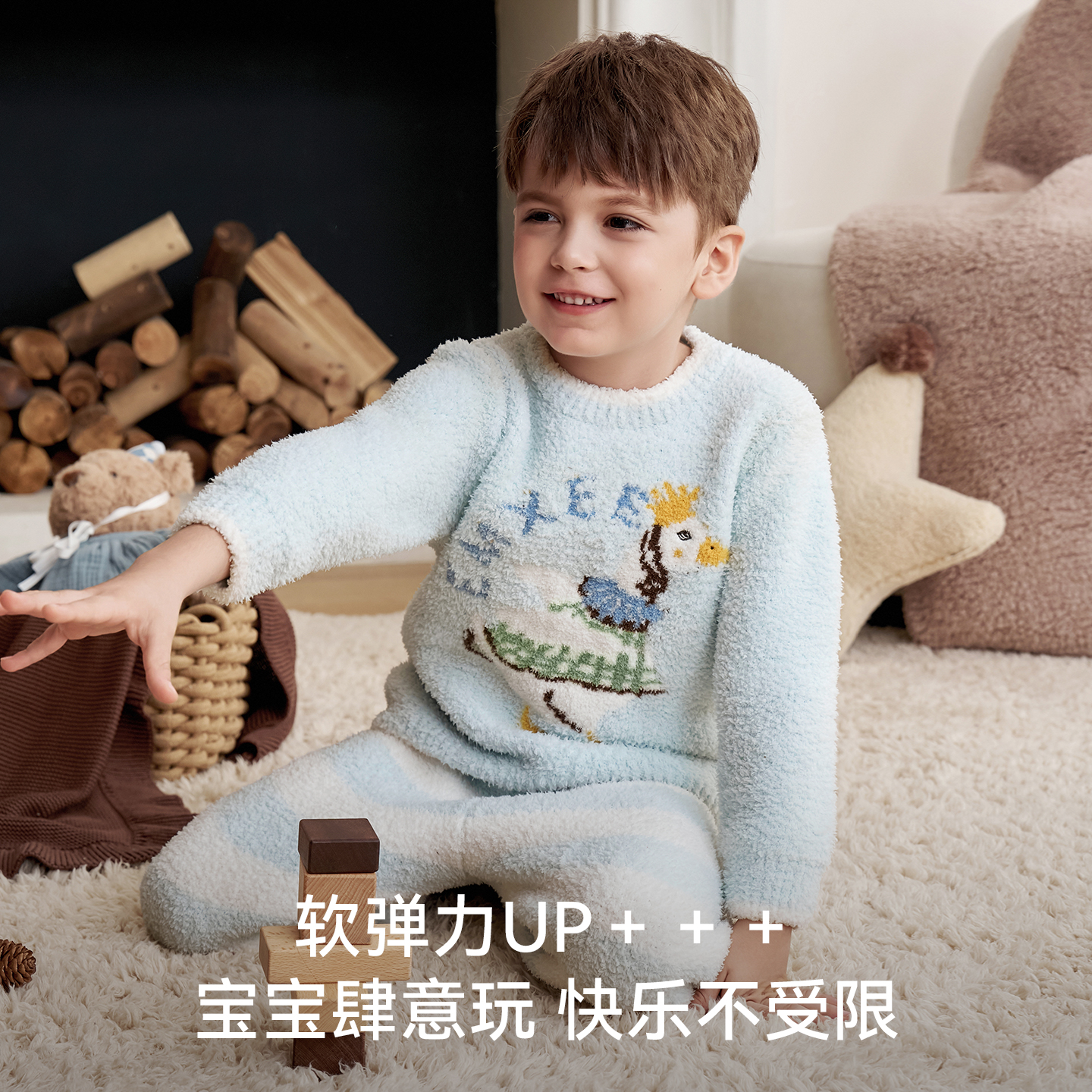 嫚熙幸运鹅儿童家居服秋冬半边绒男女童加厚加绒保暖分体睡衣套装