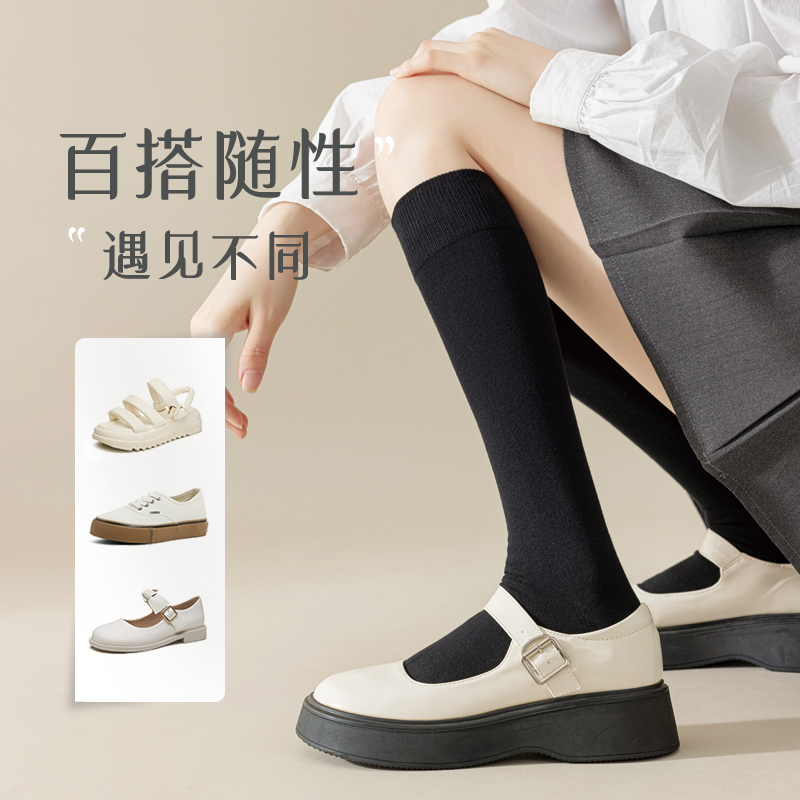 小腿袜子女春秋季 JK潮 过膝袜纯棉中筒袜微压显瘦无骨长筒长袜夏季