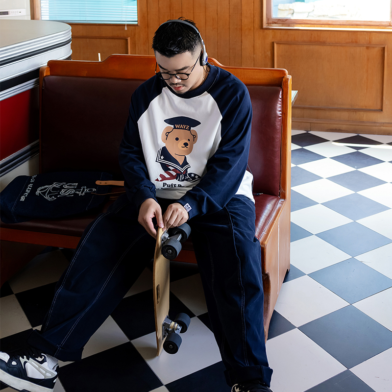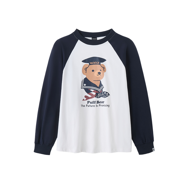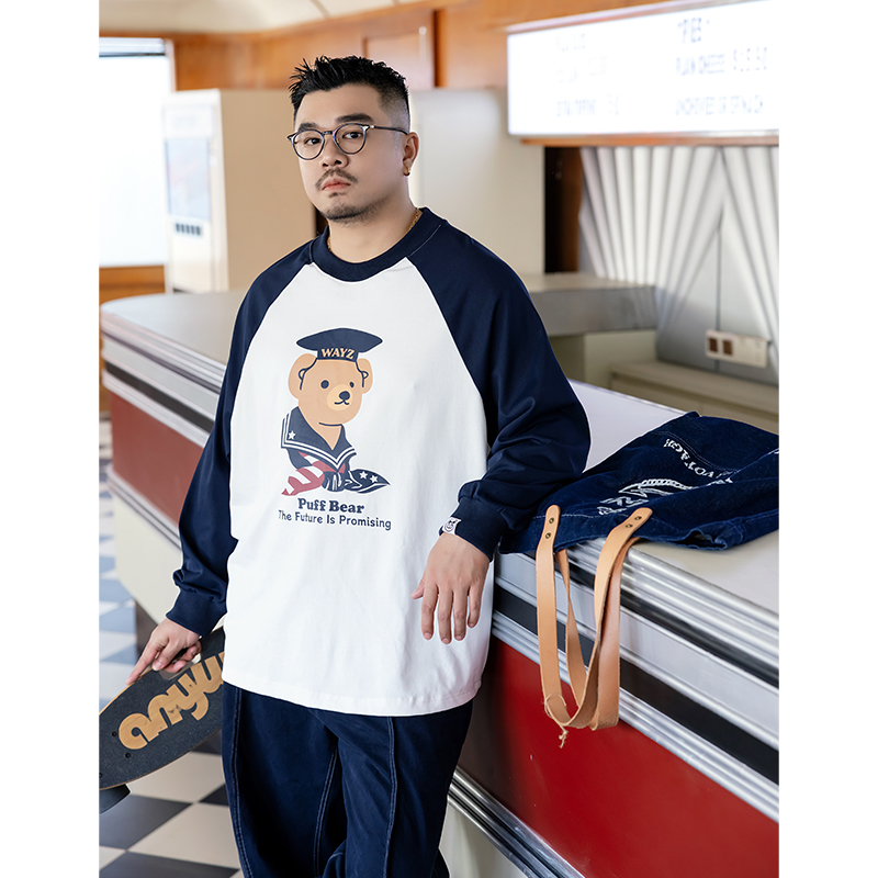 T恤9314 学院风卡通印花长袖 韦恩泽维尔宽松大码 秋圆领撞色插肩袖