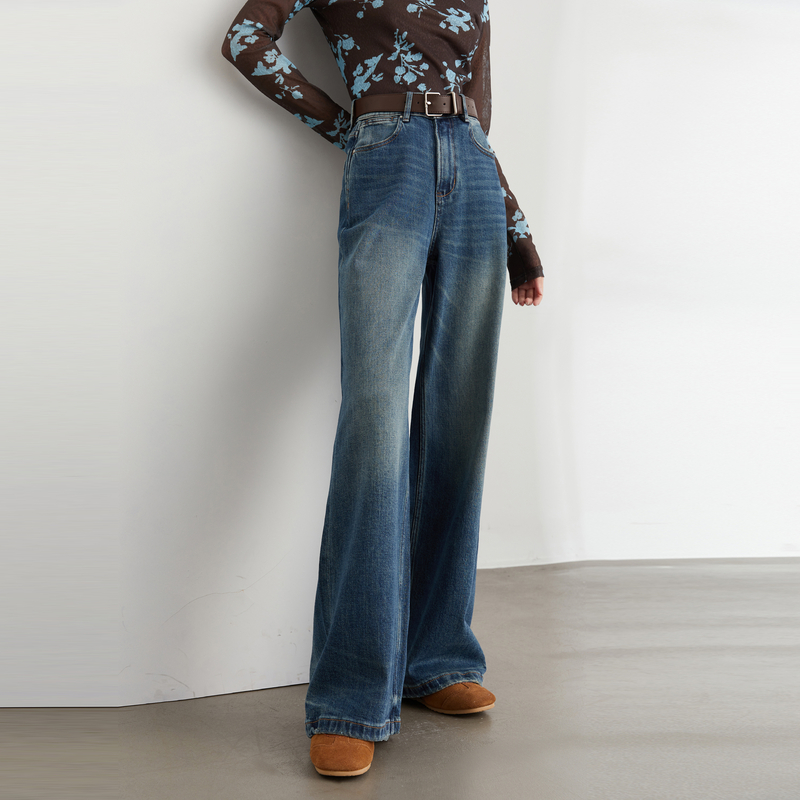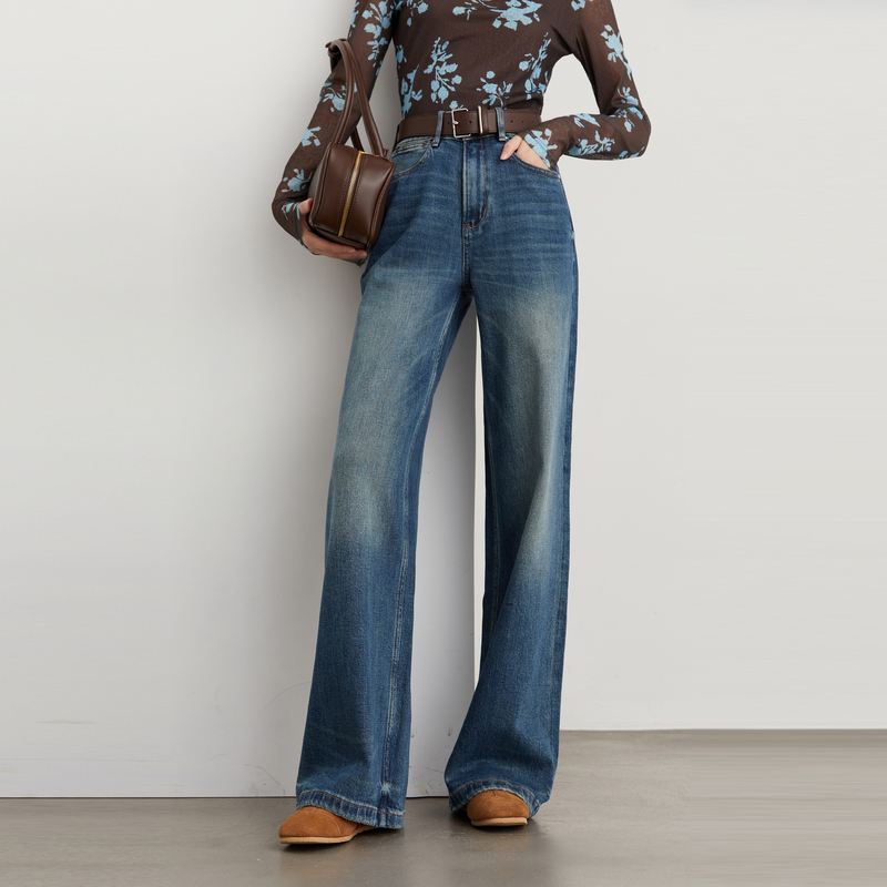 高腰直筒垂感阔腿宽松丹宁长裤 HM女装 新款 2025秋季 1261750 牛仔裤