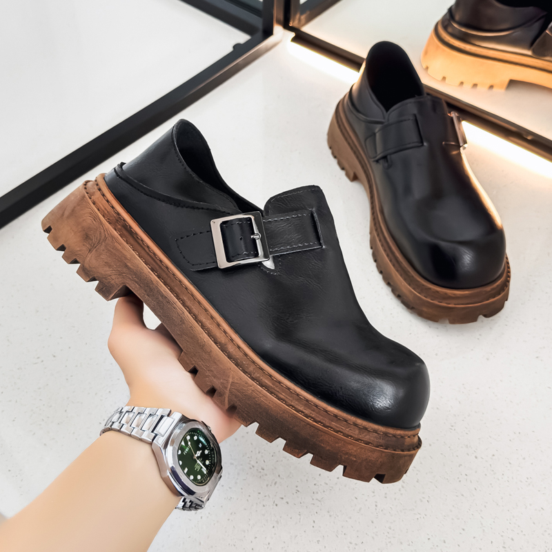 男鞋 结婚新郎鞋 内增高黑色鞋 增高皮鞋 子厚底商务休闲男士 回力皮鞋